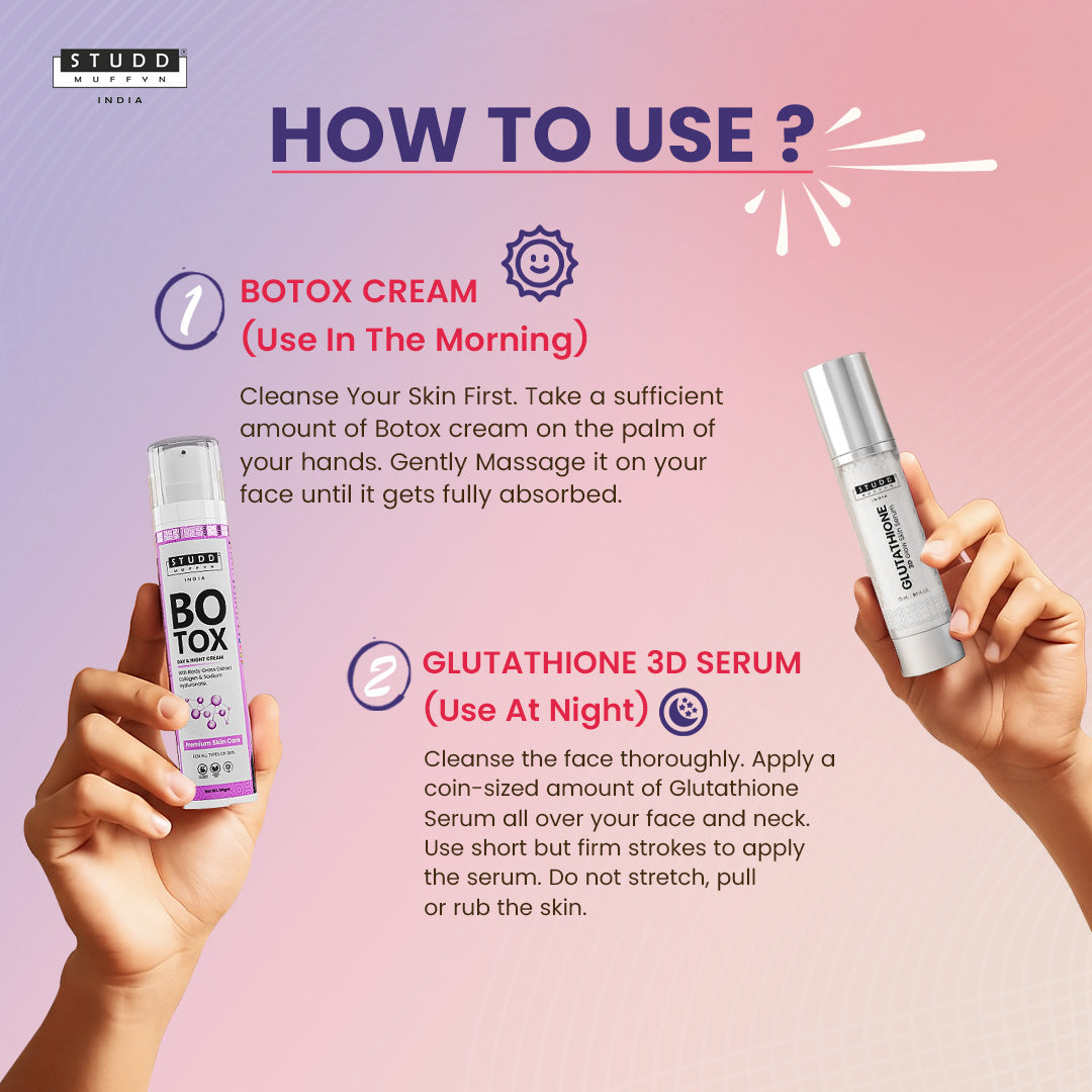 Cleanse Your Skin First. Take a sufficient amount of Botox cream on the palm of your hands. Gently Massage it on your face until it gets fully absorbed.