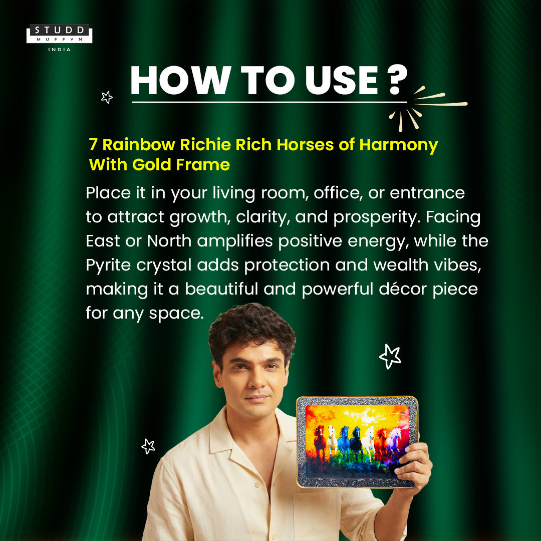 Bring home unstoppable progress, divine flow, and vibrant positivity with the 7 Rainbow Horses of Harmony â an exclusive masterpiece from Studd Muffyn Crystal Homes Series.