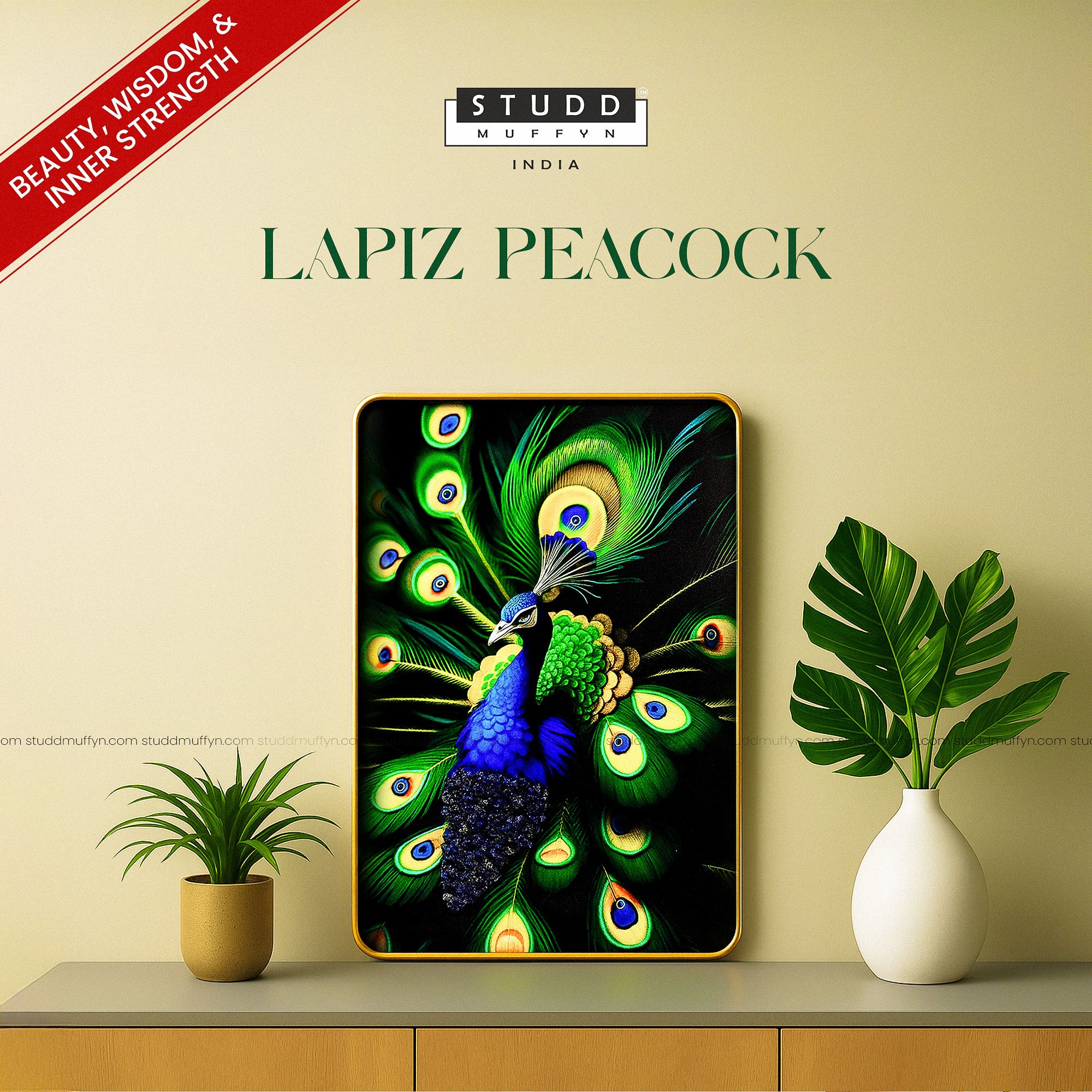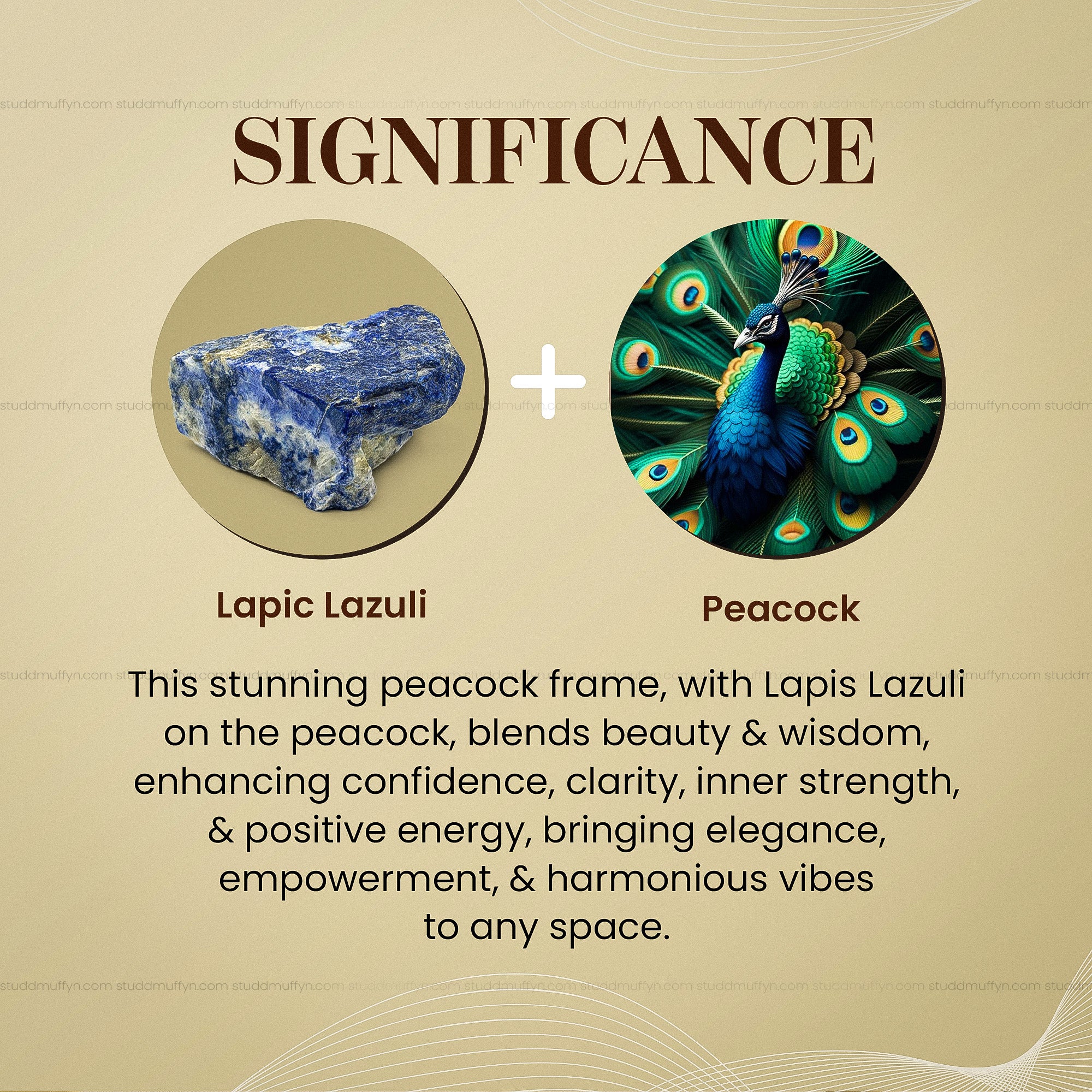 Featuring the majestic peacock — a symbol of renewal, protection, and spiritual insight — this framed collectible is adorned with genuine Lapis Lazuli crystal fragments. Known as the Crystal of Royalty, Lapis Lazuli enhances self-expression, sharpens intuition, and awakens inner truth.