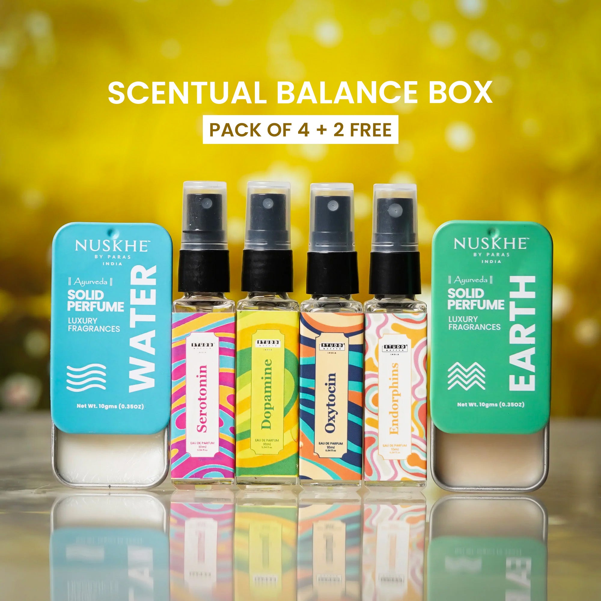 Unveil the magic of emotions and elements with the Mood Essence Perfume Set paired with Ayurvedic Solid Perfumes – Earth & Water. This combo is thoughtfully crafted to balance your moods and elevate your aura naturally.