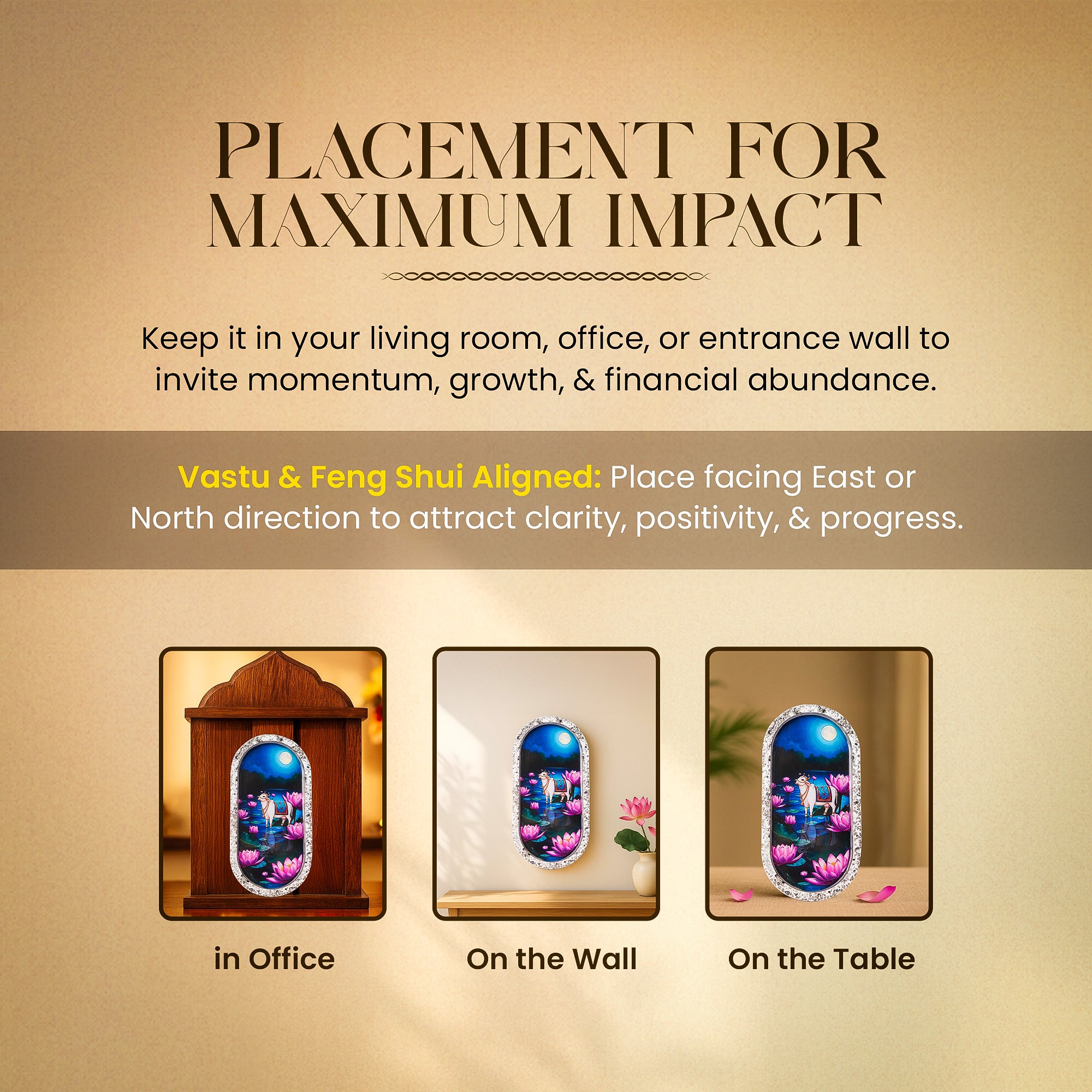 Vastu & Feng Shui Aligned – Place facing East or North direction to attract clarity, positivity, and progress.