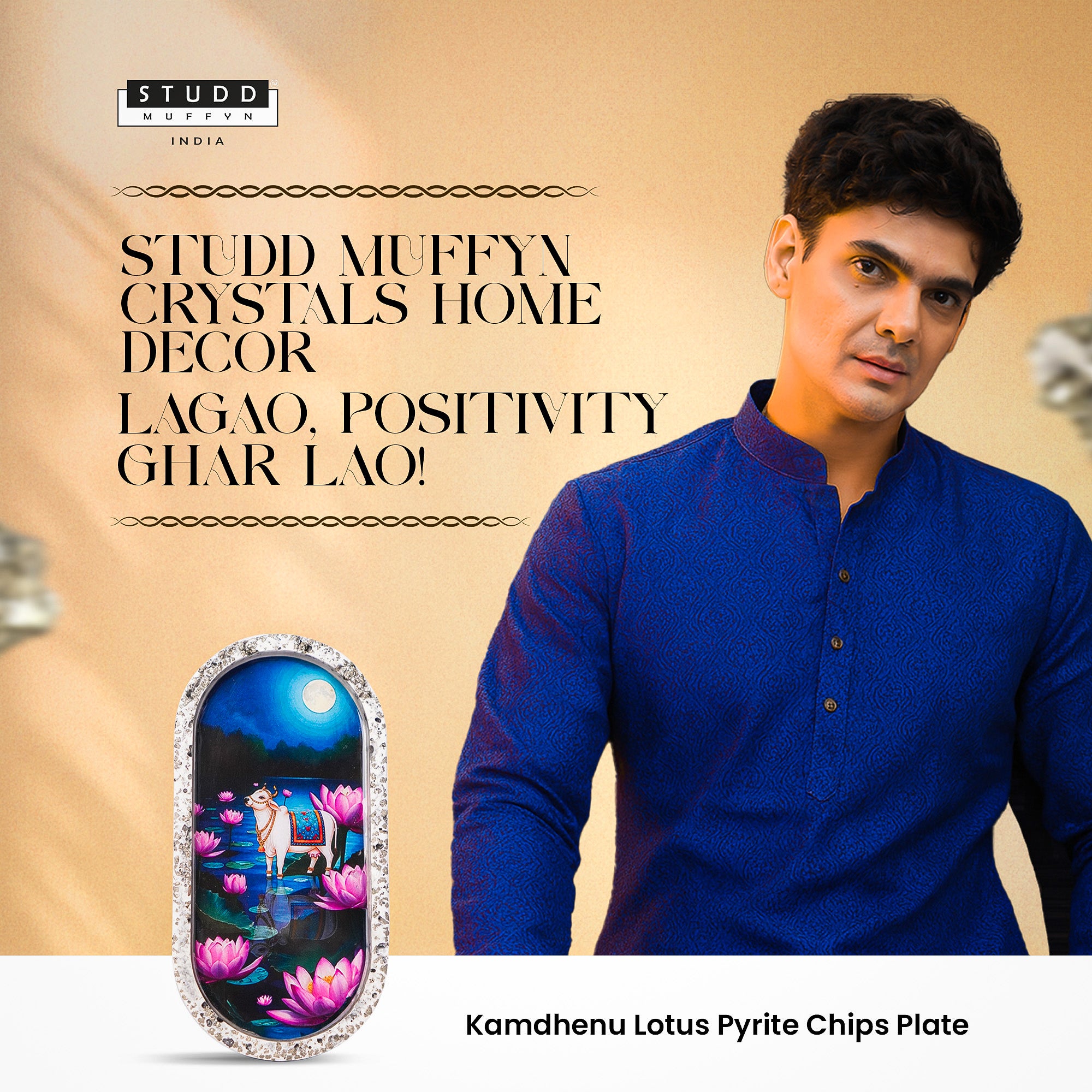 Invite divine grace and prosperity into your home with the Kamadhenu Lotus Pyrite Frame, a masterpiece that blends spiritual symbolism with luxurious crystal artistry.