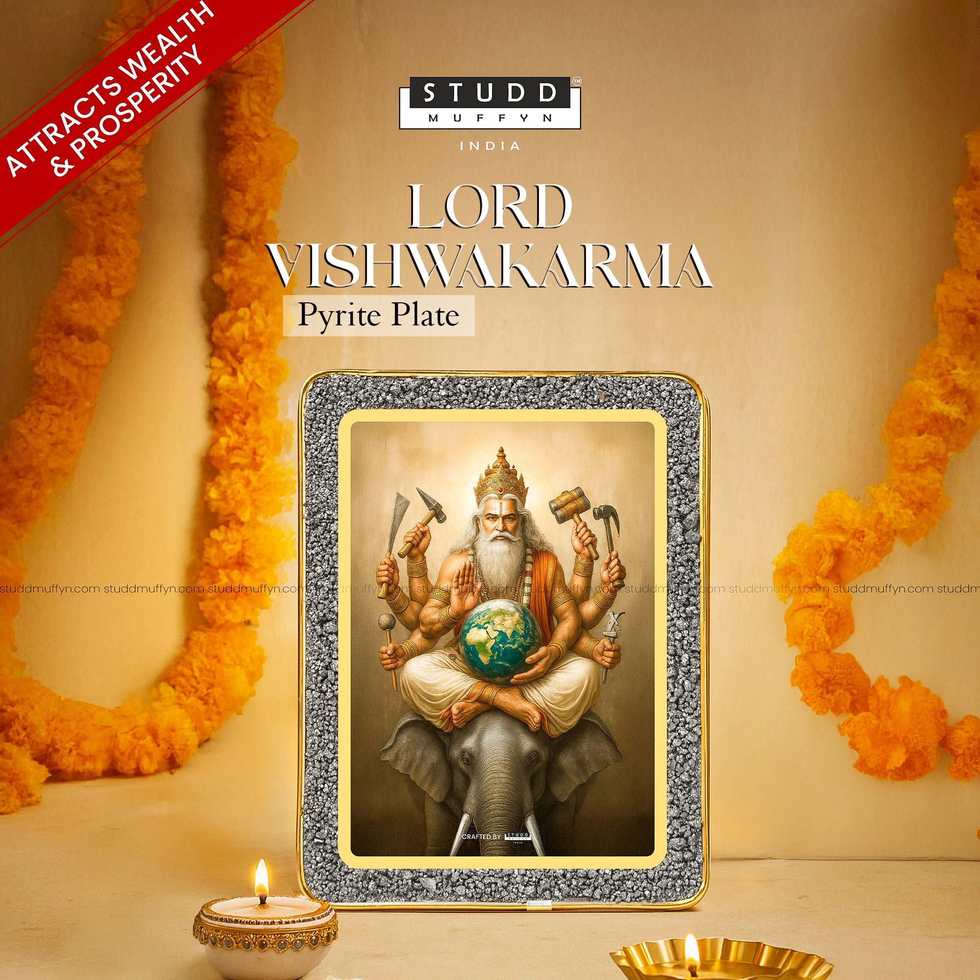 Lord Vishwakarma is revered as the celestial engineer who shaped the heavens and Earth. Placing this pyrite-embedded plate in your home, workspace, or studio not only invokes blessings of creativity and prosperity but also serves as a powerful vastu enhancer.