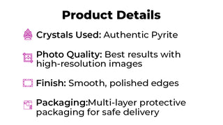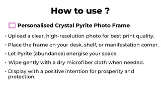 Celebrate your most cherished memories with a touch of luxury and positive energy. Our Personalised Crystal Pyrite Photo Frame is beautifully handcrafted, allowing you to upload your own picture and transform it into a stunning keepsake infused with the vibrance of real crystals.