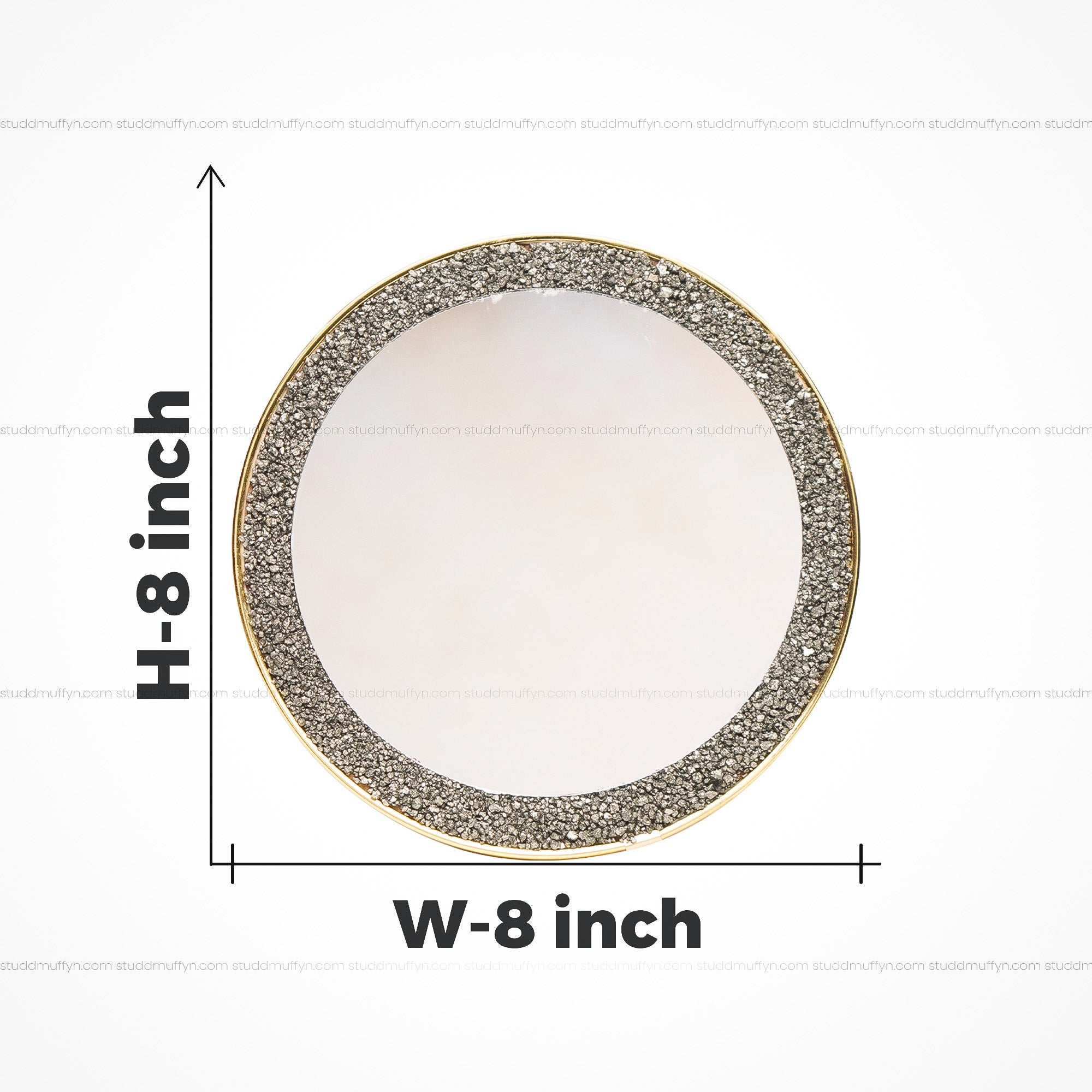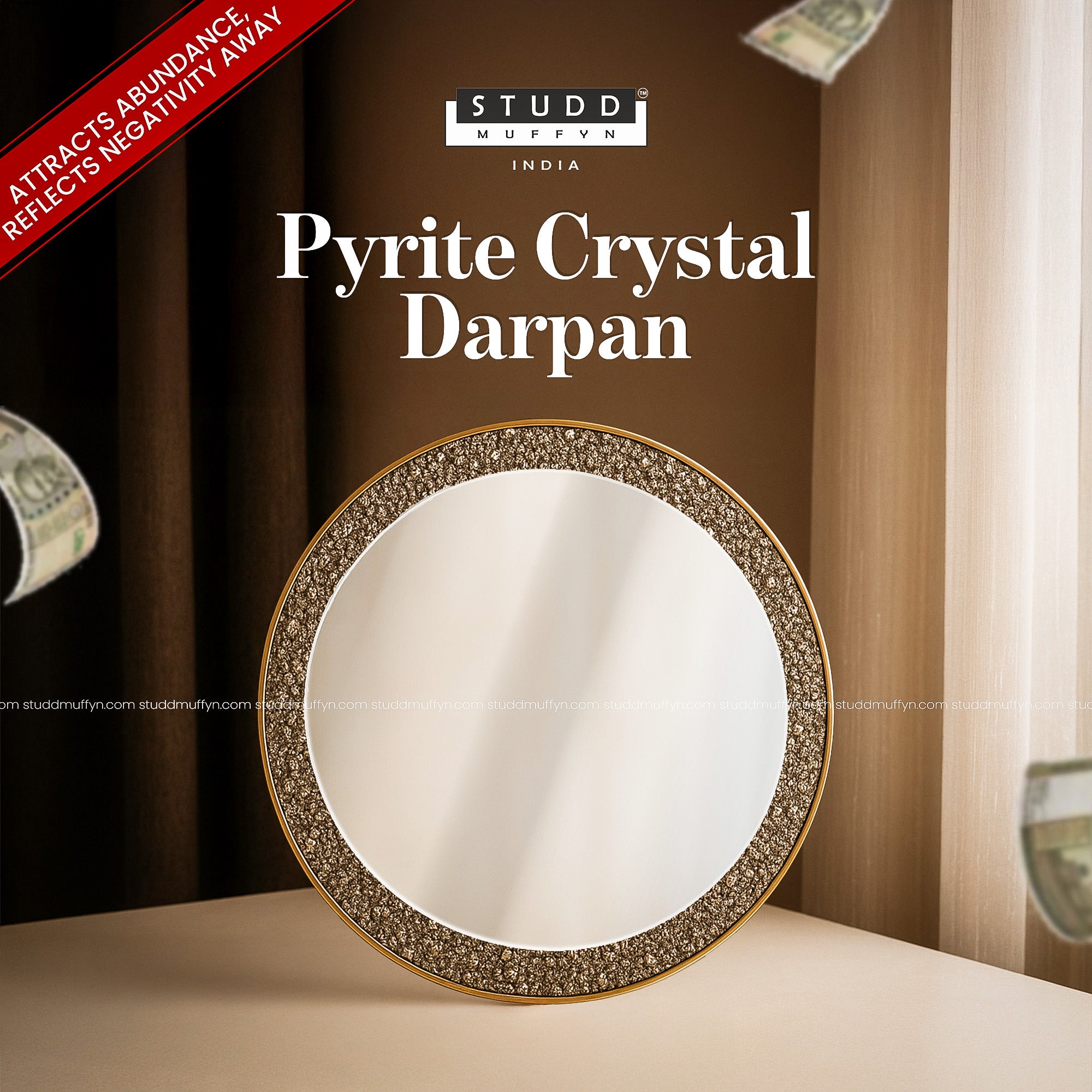 The Pyrite Crystal Darpan is a luxurious convergence of elegance and energy. Hand-embedded with natural pyrite crystals — famously known as the Stone of Wealth — this darpan transforms your space into a magnet for success and high vibrations. Its golden shimmer radiates confidence, prosperity, and a refined sense of style.