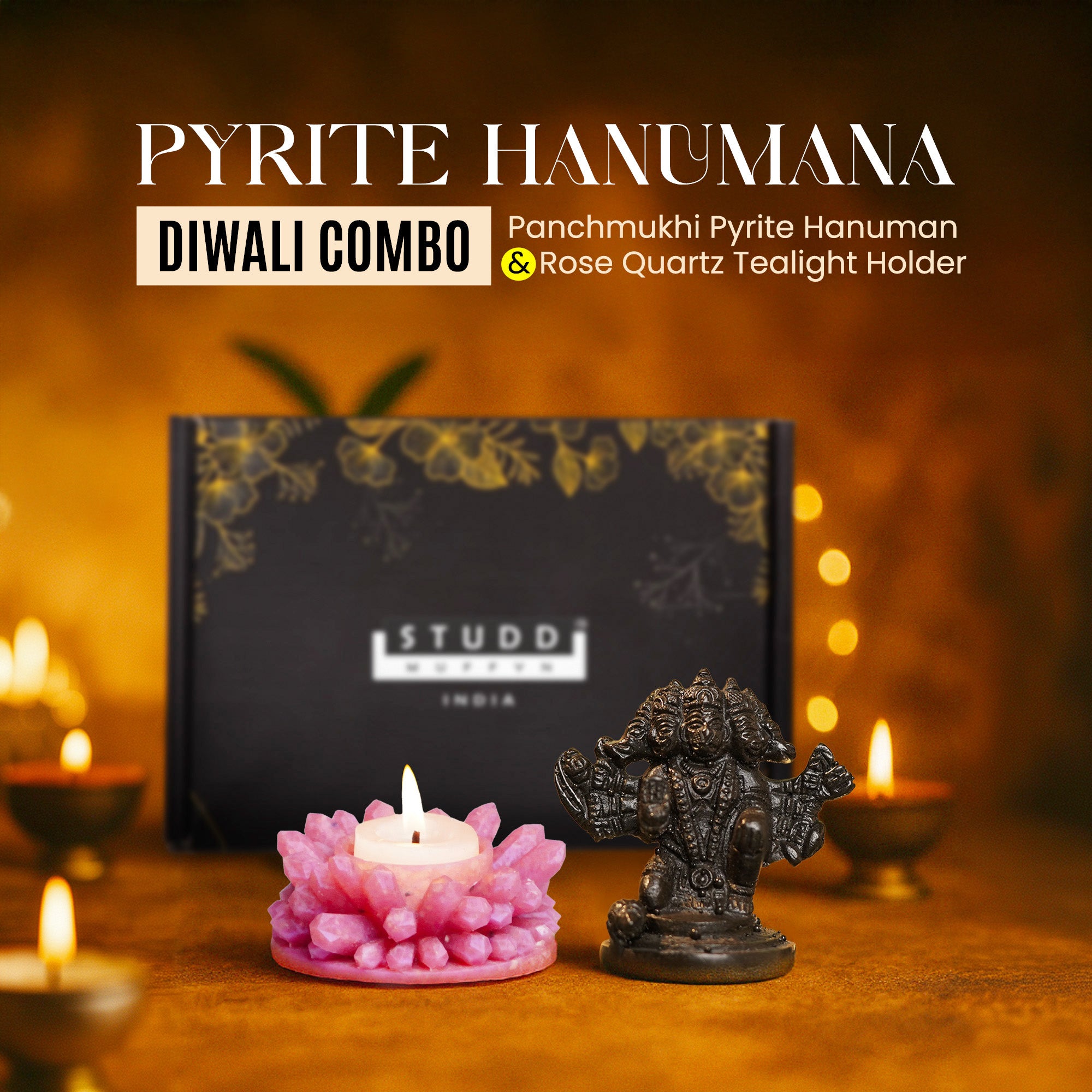 Celebrate this Diwali with the strength, courage, and protection of Lord Hanuman, paired with the illuminating energy of a crystal candle. The Pyrite Hanuman Diwali Combo combines divine blessings with the natural shielding and prosperity powers of Pyrite, creating a perfect festive offering.