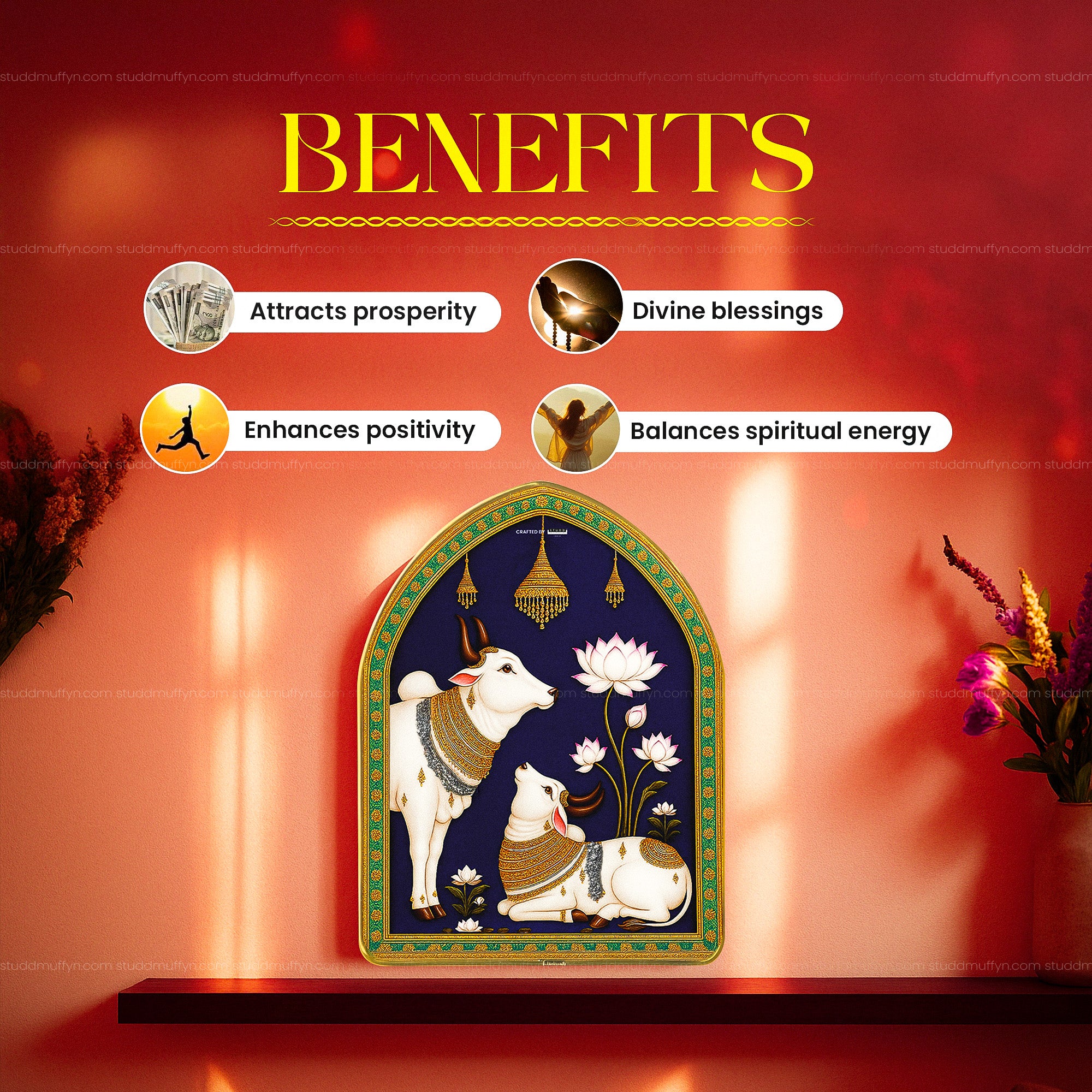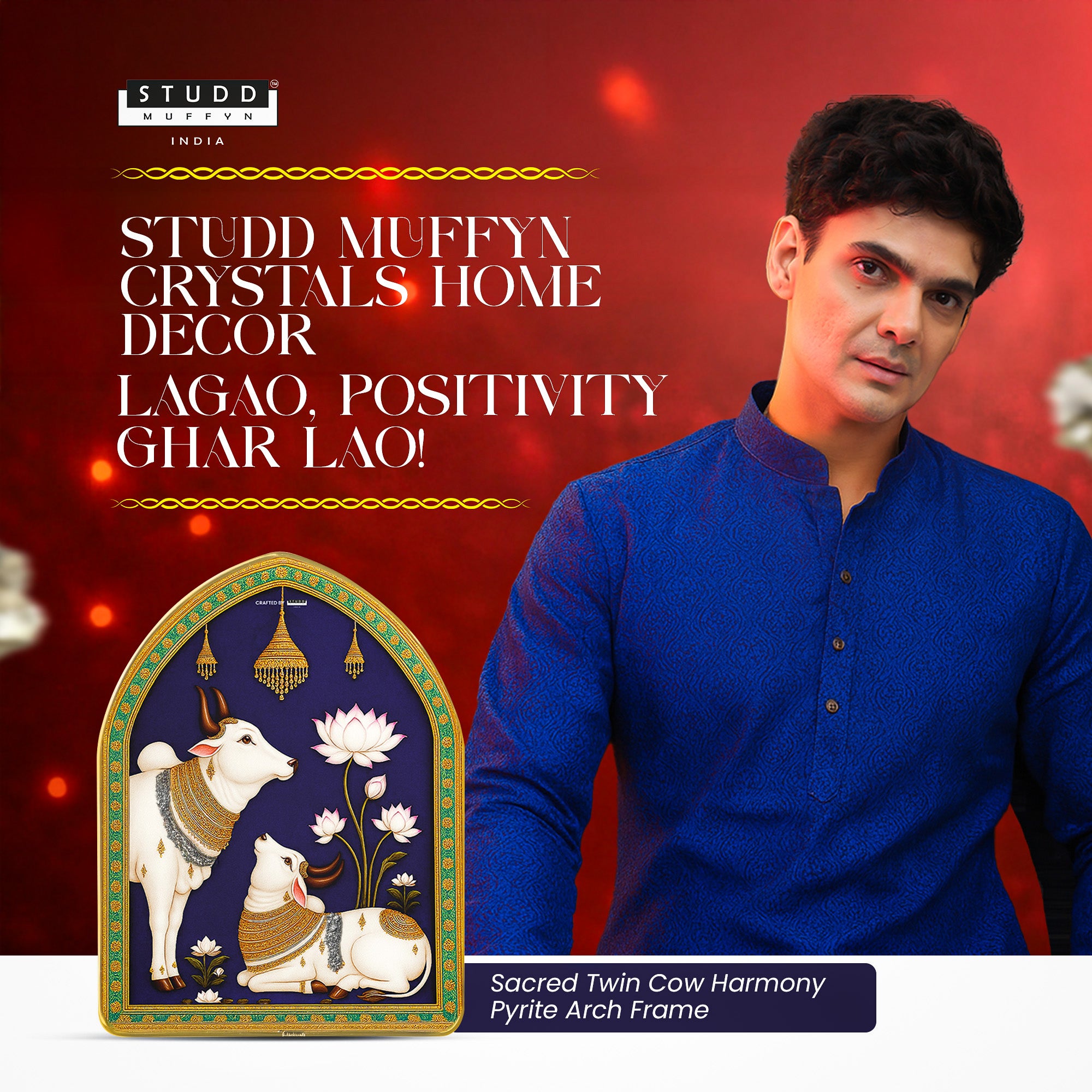 Celebrate the sacred bond of nurture and divinity with the Sacred Twin Cow Harmony Pyrite Arch Frame — a stunning art piece that radiates peace, prosperity, and protection. Featuring two serene cows surrounded by blooming lotuses, this handcrafted plate embodies purity and maternal grace.