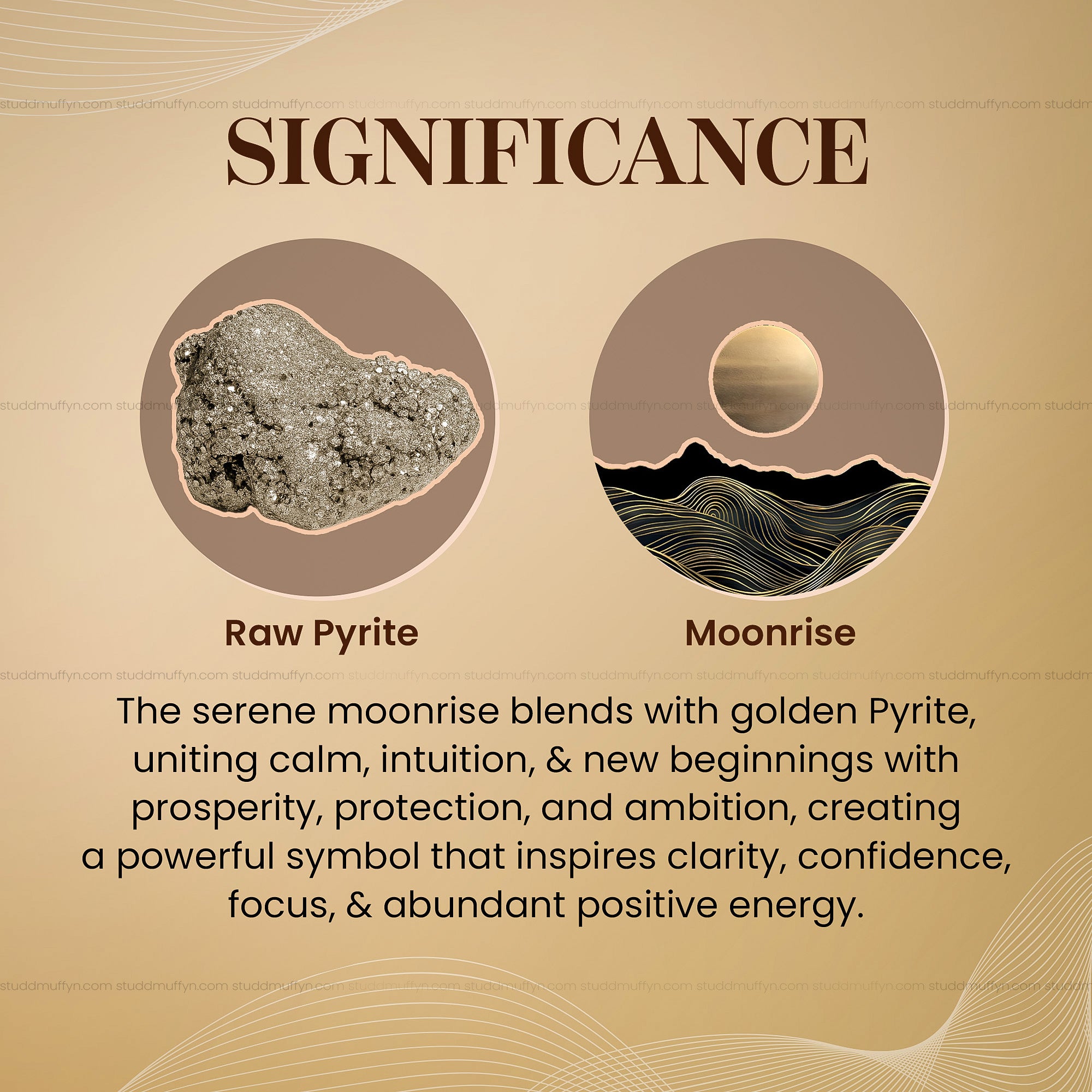 Featuring a radiant moon rising into a dark sky, this artwork is infused with the shimmering power of natural Pyrite crystals. Symbolic of new beginnings and forward movement, it brings together lunar calmness with the grounded energy of prosperity.