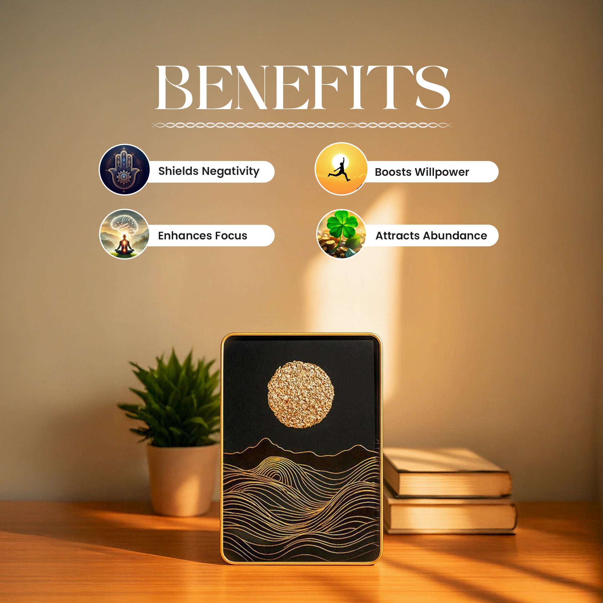 Energize Your Space – The embedded Pyrite crystal radiates protective, wealth-attracting vibrations that uplift your environment.