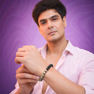 Studd Muffyn presents the Riche Rich Bracelet, a powerful combination of Obsidian + Pyrite beads designed byĀ the Pyrite Man of India Paras Tomar, to bring you double the energy in one stunning piece of jewelry.