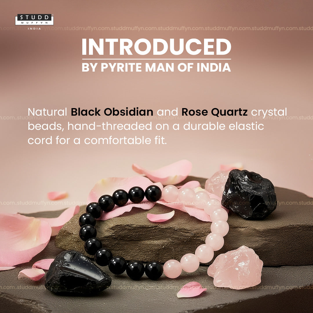 Obsidian shields against negativity, clears mental fog, and stabilizes your energy, while Rose Quartz opens the heart to self-love, healing, and emotional balance. Together, they create an energetic synergy that promotes peace, clarity, and emotional resilience — making it the perfect everyday companion for those seeking inner alignment.