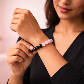 Embrace the perfect harmony of strength and compassion with the Obsidian & Rose Quartz Bracelet. Designed to symbolize the balance of dark and light energies, this bracelet merges the grounding power of Black Obsidian with the gentle, loving aura of Rose Quartz.