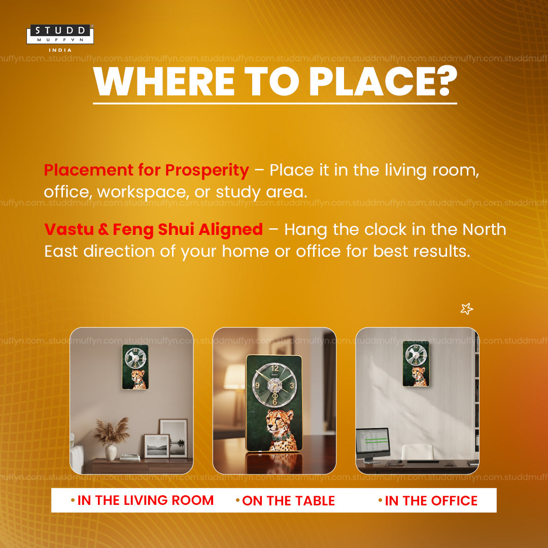 Introducing the Cheetah Green Aventurine Clock, a thoughtfully designed wall décor by India's Biggest crystal brand crafted for those who move fast, think clearly, and stay open to new opportunities.