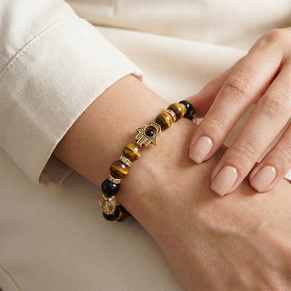 At its center of this bracelet rests the Hamsa (Hamsai) charm, a timeless symbol of protection believed to block the evil eye, invite positivity, and offer spiritual safeguarding. Recognized across cultures, it forms the protective center of the bracelet, gently guarding your energy.