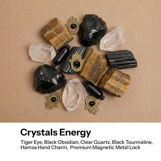 Tiger Eye crystals placed on both sides represent courage, confidence, and bold action—supporting focus and inner strength.