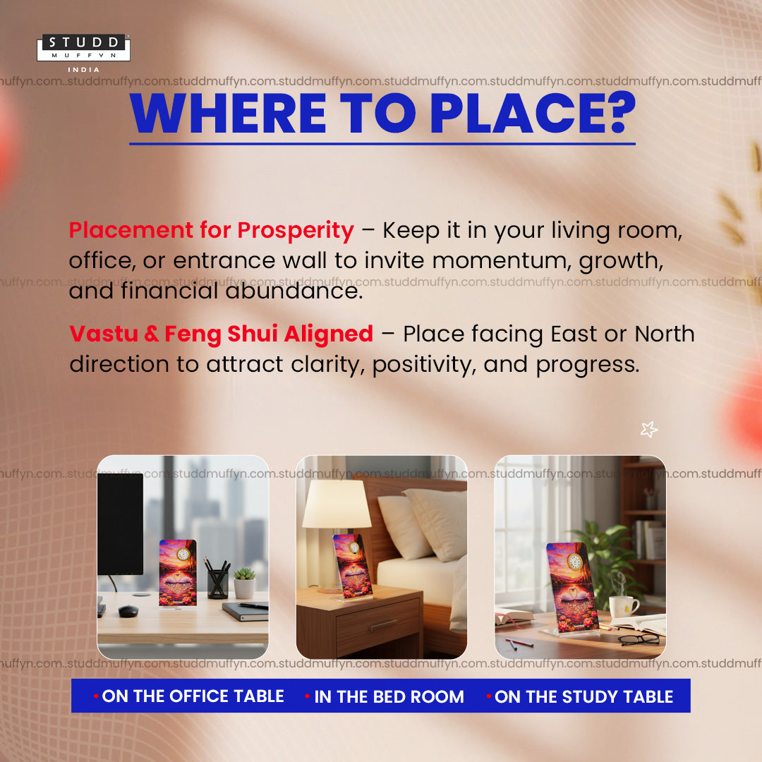 Designed with a serene lotus-filled landscape and a precise quartz clock mechanism, this piece doesn’t just tell time — it sets the emotional rhythm of your space. Ideal for bedside tables, living rooms, work desks, or as a thoughtful gift for anniversaries, weddings, or housewarmings.