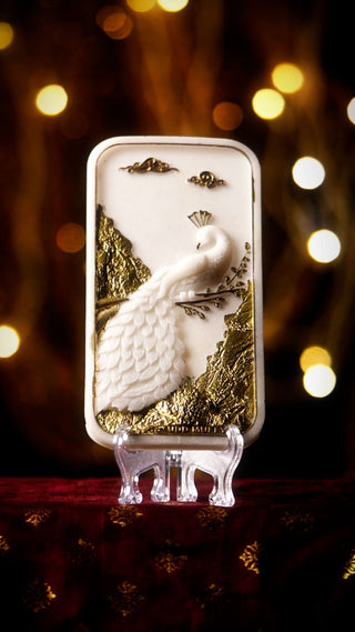 The beautifully detailed peacock carving represents beauty, royalty, and divine awakening in Indian tradition. Paired with elegant gold accents and intricate craftsmanship, this piece becomes more than just a spiritual tool—it transforms into a luxurious statement of positivity and refined decor.