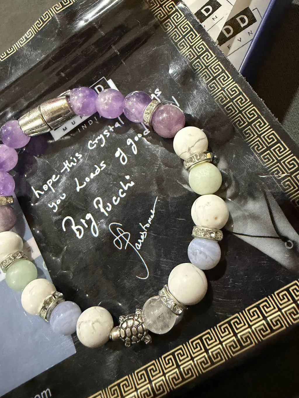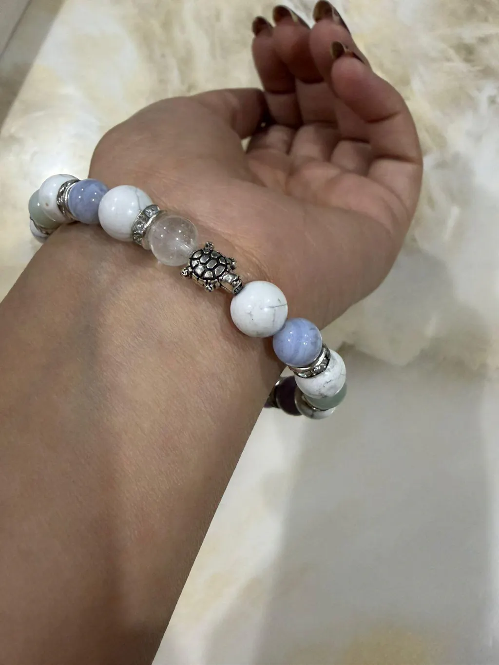 Howlite appears multiple times to promote calmness, patience, and emotional balance.