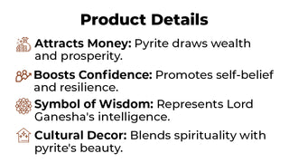 The Pyrite Ganesha Idol is a captivating figurine that combines the wisdom and success of Lord Ganesha with the wealth-attracting properties of pyrite.