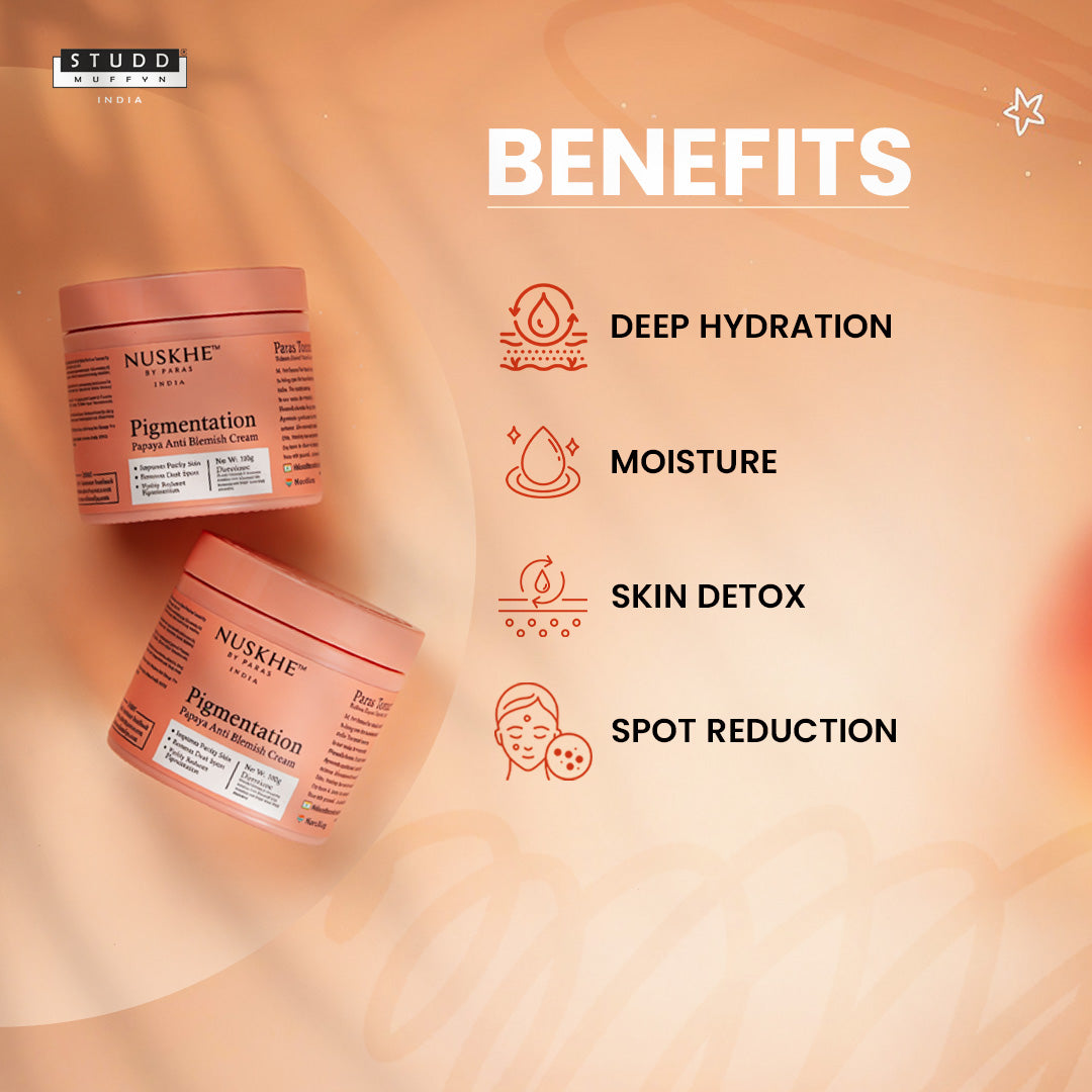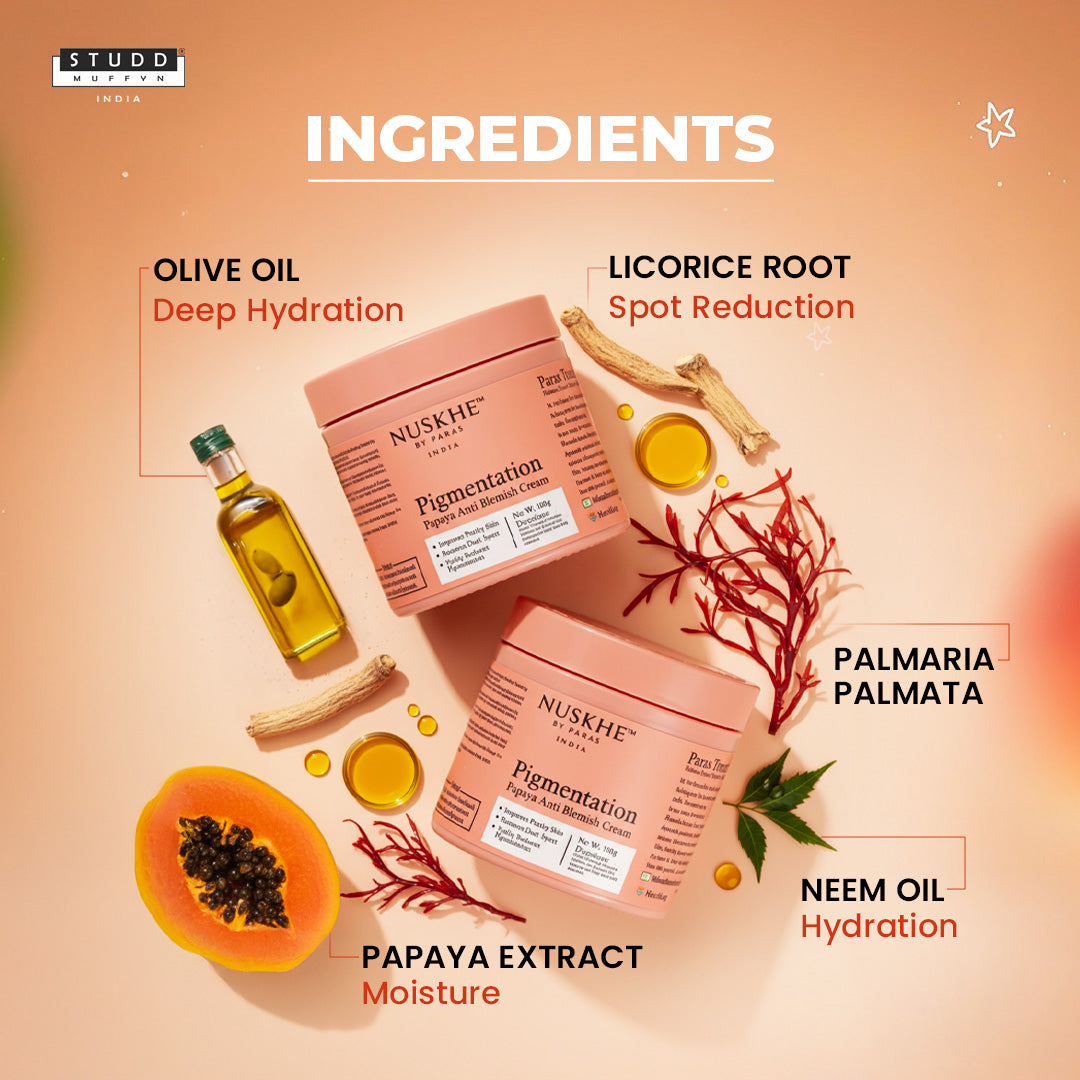 Your skin isn’t as flawless as you’d like it to be and you’re tired of ever-growing patches on your skin which are ruining your even skin tone. Correct? We’ve got you. Let’s get that pigmentation under control, with the Ayurvedic benefits of Papaya and retinol-boosting goodness. Use generously morning and night for visible results in weeks. Our Ayurvedic Pigmentation Papaya Anti-Blemish Cream is a Premium Formula to get rid of un-natural skin spots That are Caused by the Effect of Acne, Pimples, Pigmentation, Under Aram Spots, Blemishes, Under Eye Dark Circles Etc. This 30 days money savings combo is better to purchase as it saves a lot of your money.