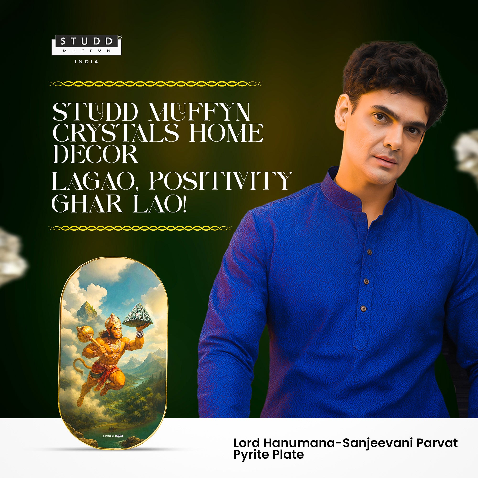 Divine Strength: Lord Hanumana-Sanjeevani Parvat Pyrite Plate