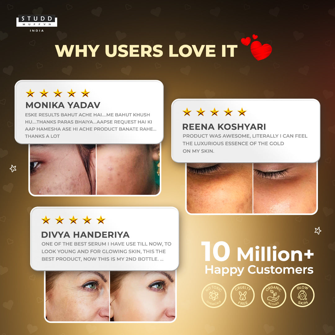 Say hello to our radiant secret! Our feather-light moisturizing 24k serum, enriched with premium ingredients including precious Gold Leaf, is designed to rejuvenate, repair, and pamper your skin.