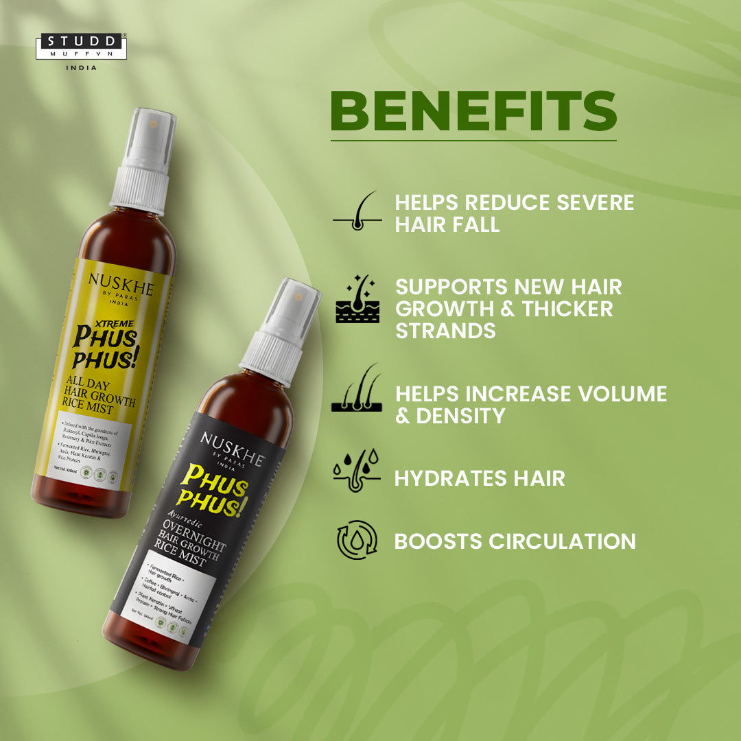 Say hello to all-day hair care with our 24/7 Phus Phus Combo – a powerful pair of hair mists designed to strengthen roots, reduce hair fall, and promote healthier, fuller hair. This combo includes: