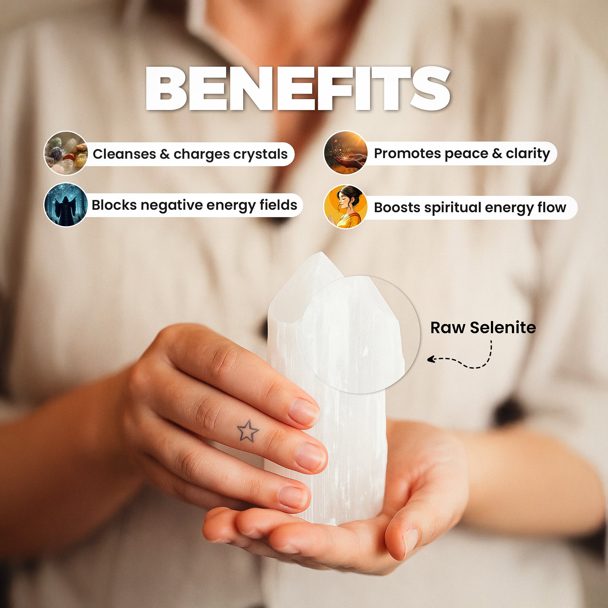 Cleansing Energy: Selenite is renowned for its ability to clear negative energies from both the environment and objects. By placing other crystals on a selenite plate or coaster, users can effectively cleanse them of any stagnant or unwanted energies, ensuring they are ready for use in healing practices