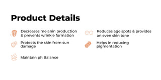 It helps reduce pigmentation, dark spots, acne marks, blemishes, and patchy skin while brightening and evening out the complexion.