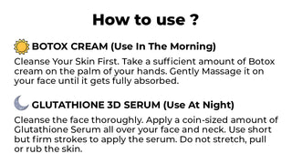 AM (Botox Cream): Helps firm the skin, smooth fine lines, and give a lifted, youthful look.