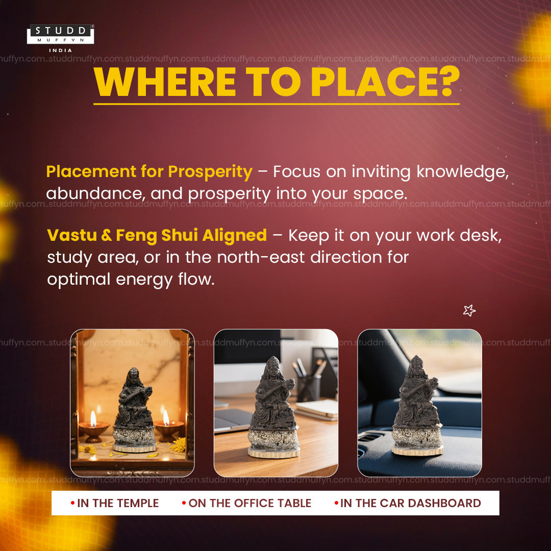 Perfect as a thoughtful gift or personal inspiration piece, the Maa Saraswati Pyrite Idol serves as a reminder that true prosperity begins with knowledge.