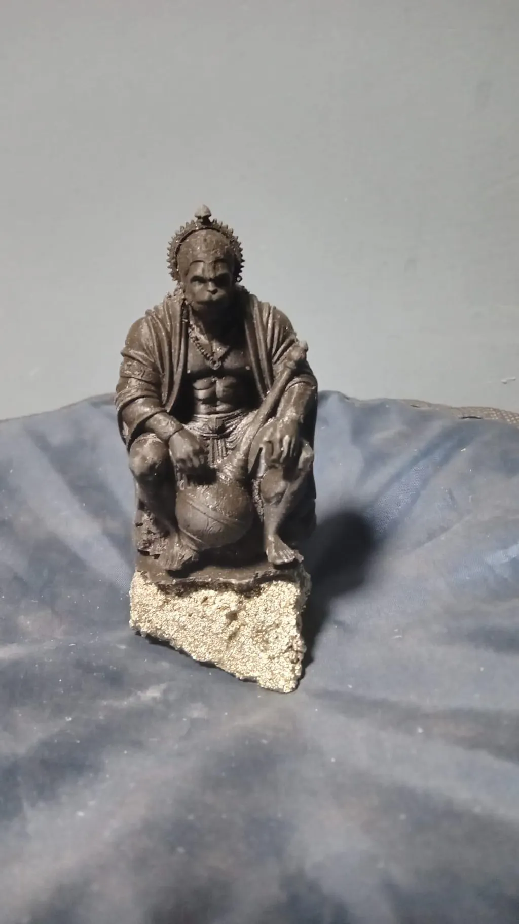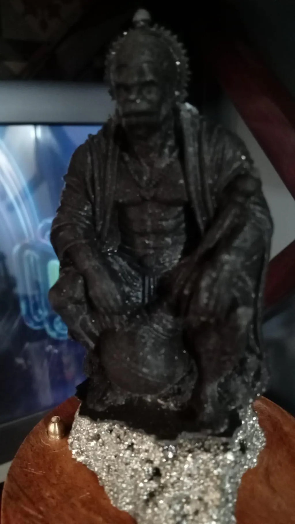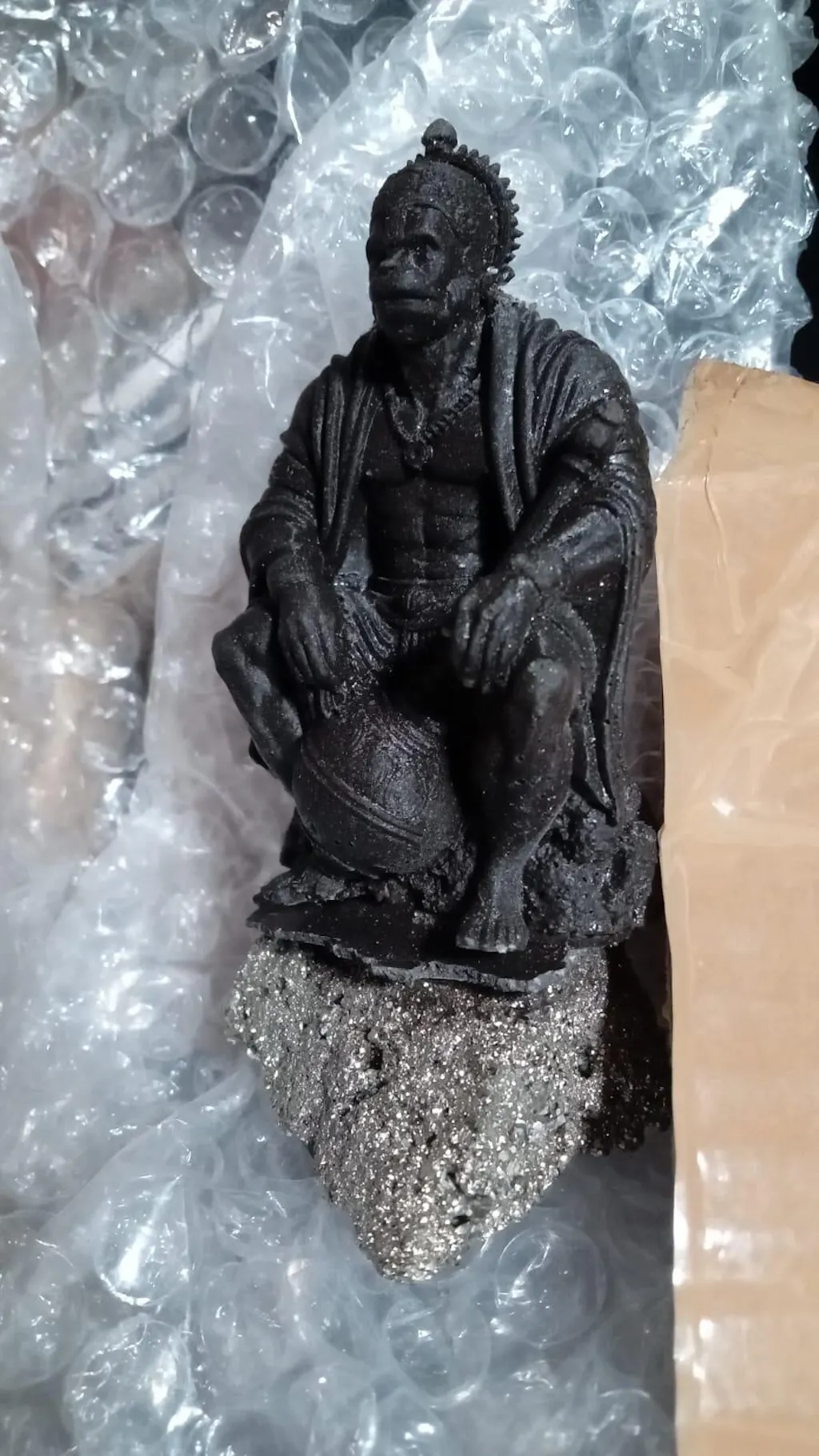 Invite the unwavering strength and devotion of Lord Hanuman into your home with this magnificent creation — Hanuman Ji beautifully crafted from Pyrite crystal and seated atop a natural Pyrite Geode. A divine representation of courage, discipline, and spiritual energy, this piece embodies the true spirit of Bhakti and Shakti.