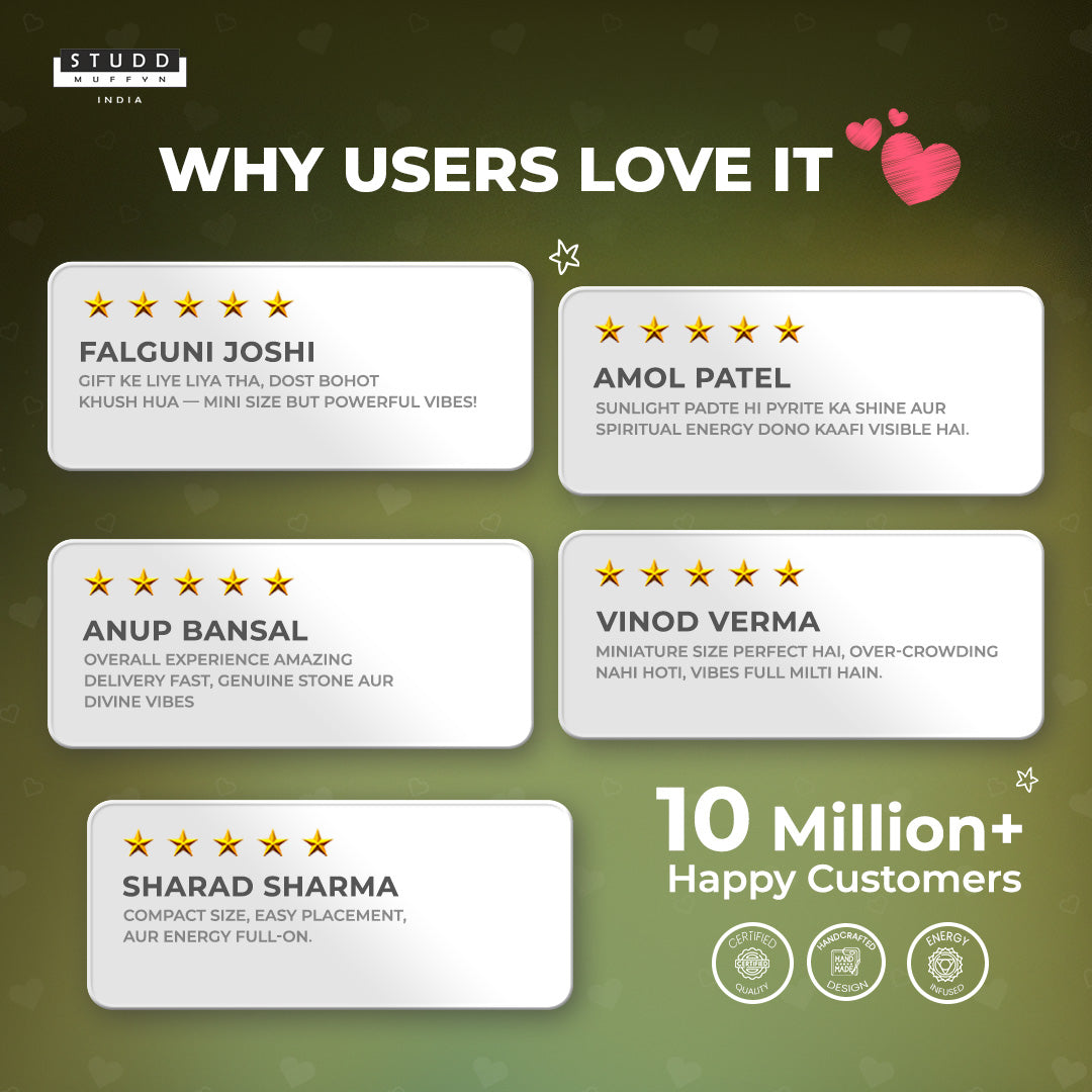 The Pyrite Geode, revered as the crystal of protection and prosperity, amplifies Lord Hanuman’s divine aura — shielding your space from negative energies and empowering you with resilience and confidence. Together, they form a sacred fusion of spiritual protection and material abundance, perfect for both homes and workspaces.