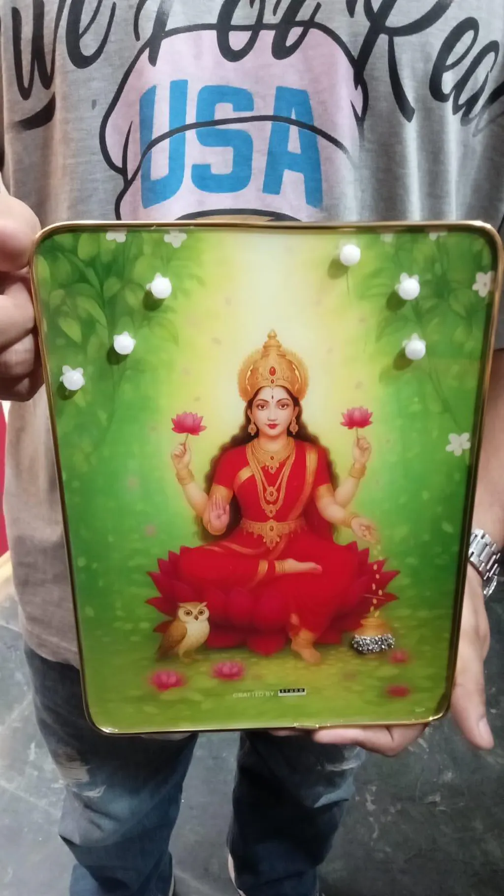 • Material Composition – Natural Rose Quartz Crystal with High-Definition Maa Laxmi Artwork