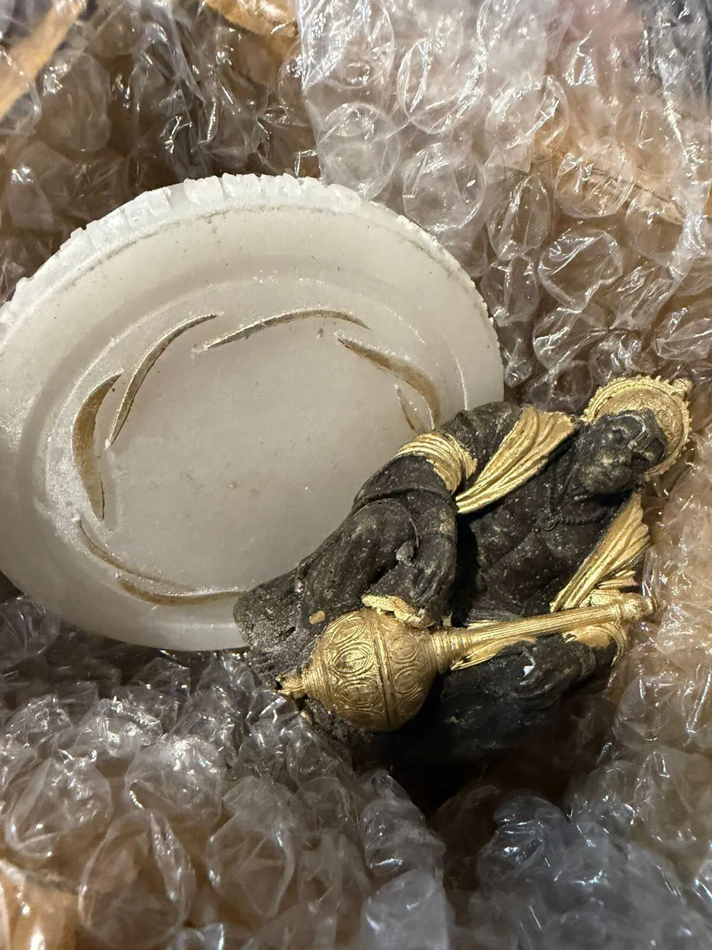 The idol rests on a 100% natural, true and tested Selenite coaster, certified and passed through strict quality checks to ensure authenticity. Selenite is known for its high-vibrational cleansing properties — helping clear stagnant energy, uplift surroundings, and maintain spiritual harmony. It continuously refreshes the energy of objects placed upon it.