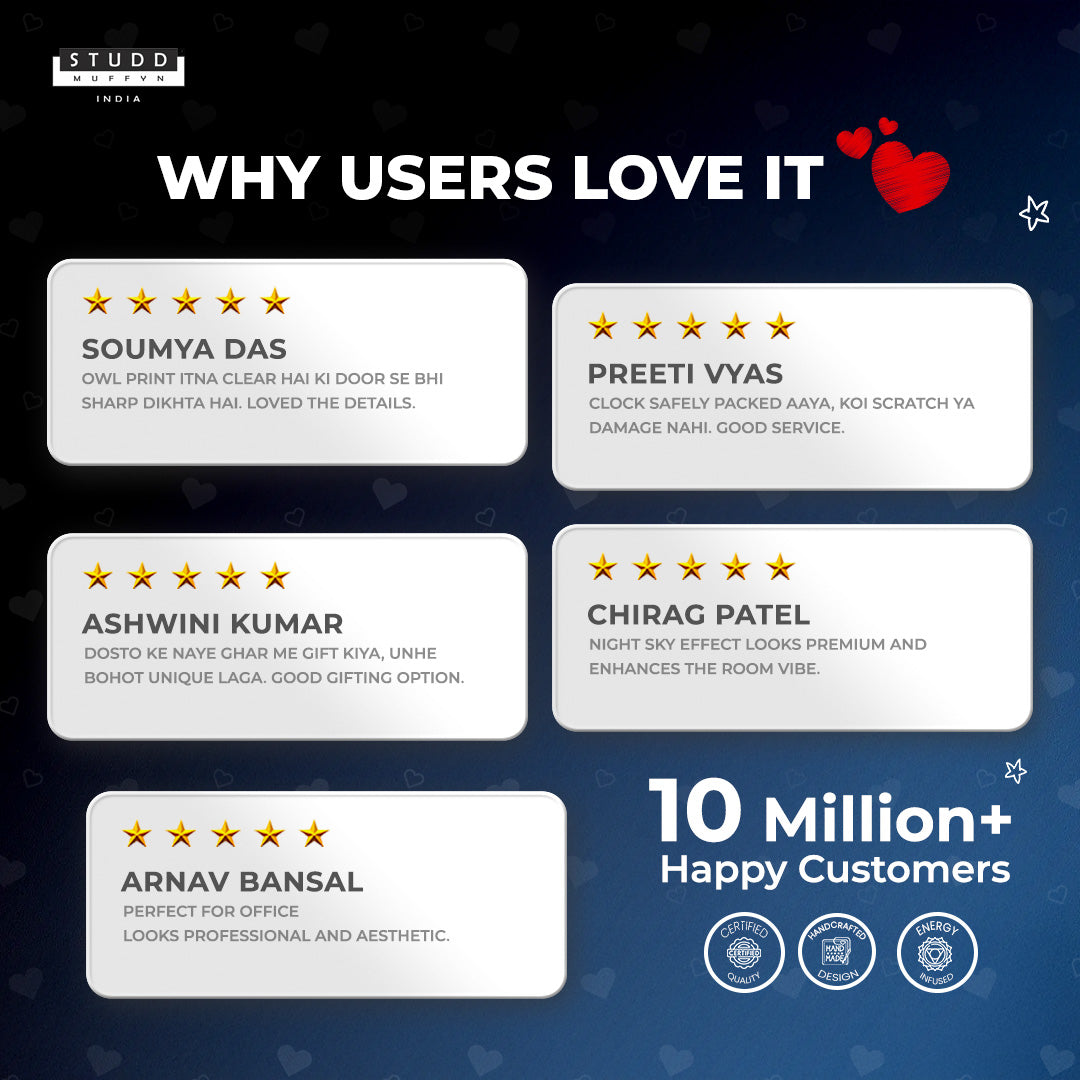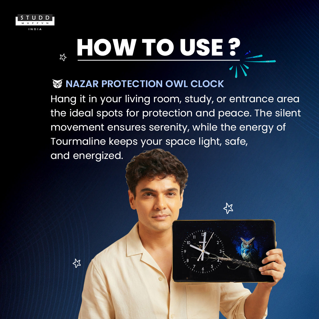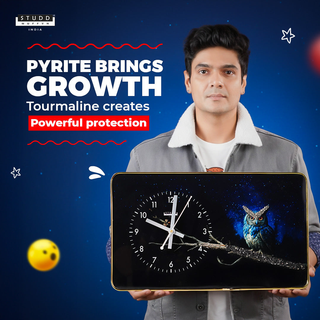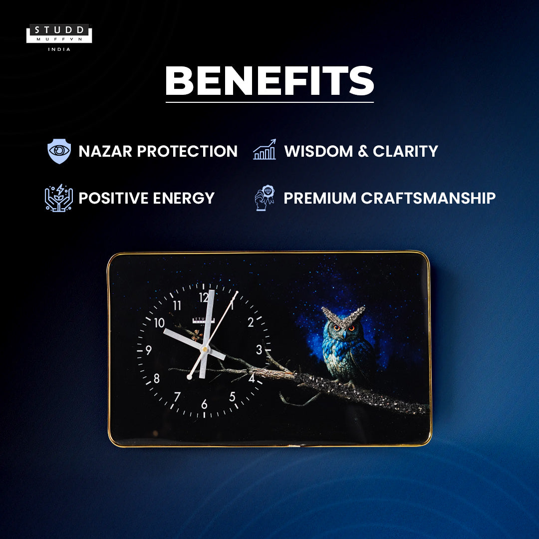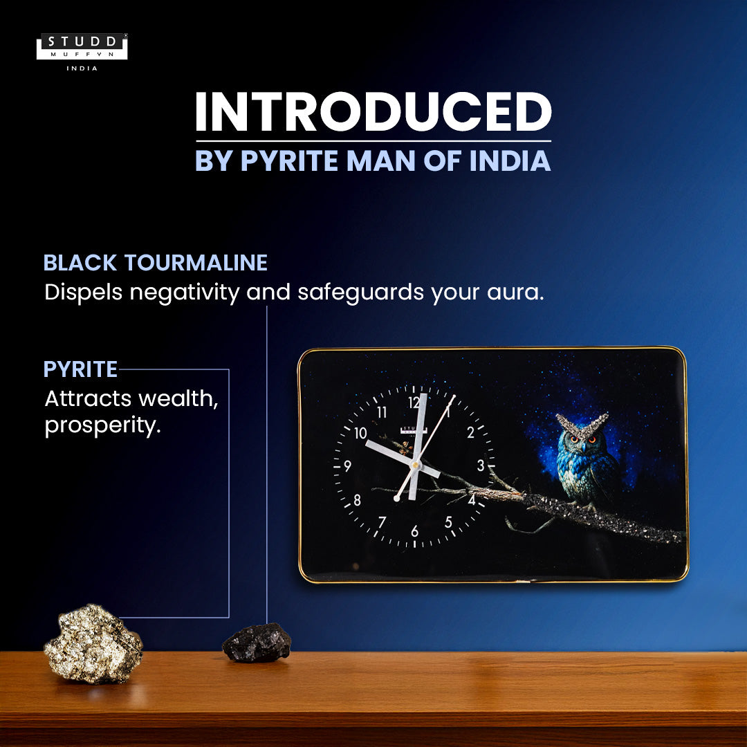 The captivating Owl motif, set against a midnight sky, evokes mystery, insight, and heightened awareness — perfect for spaces where peace and focus are essential. The protective aura of Black Tourmaline wards off negative energy, making this clock both a beautiful and meaningful addition to your home or workspace.