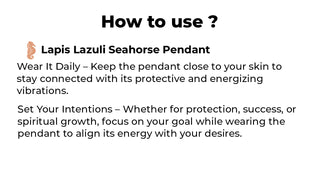 Inspired by the tranquil spirit of the ocean, the Lapis Lazuli Seahorse Pendant is a fusion of serenity and strength. The seahorse, known for its grace and resilience, embodies emotional balance and gentle power — while the Lapis Lazuli crystal enhances wisdom, truth, and inner peace.