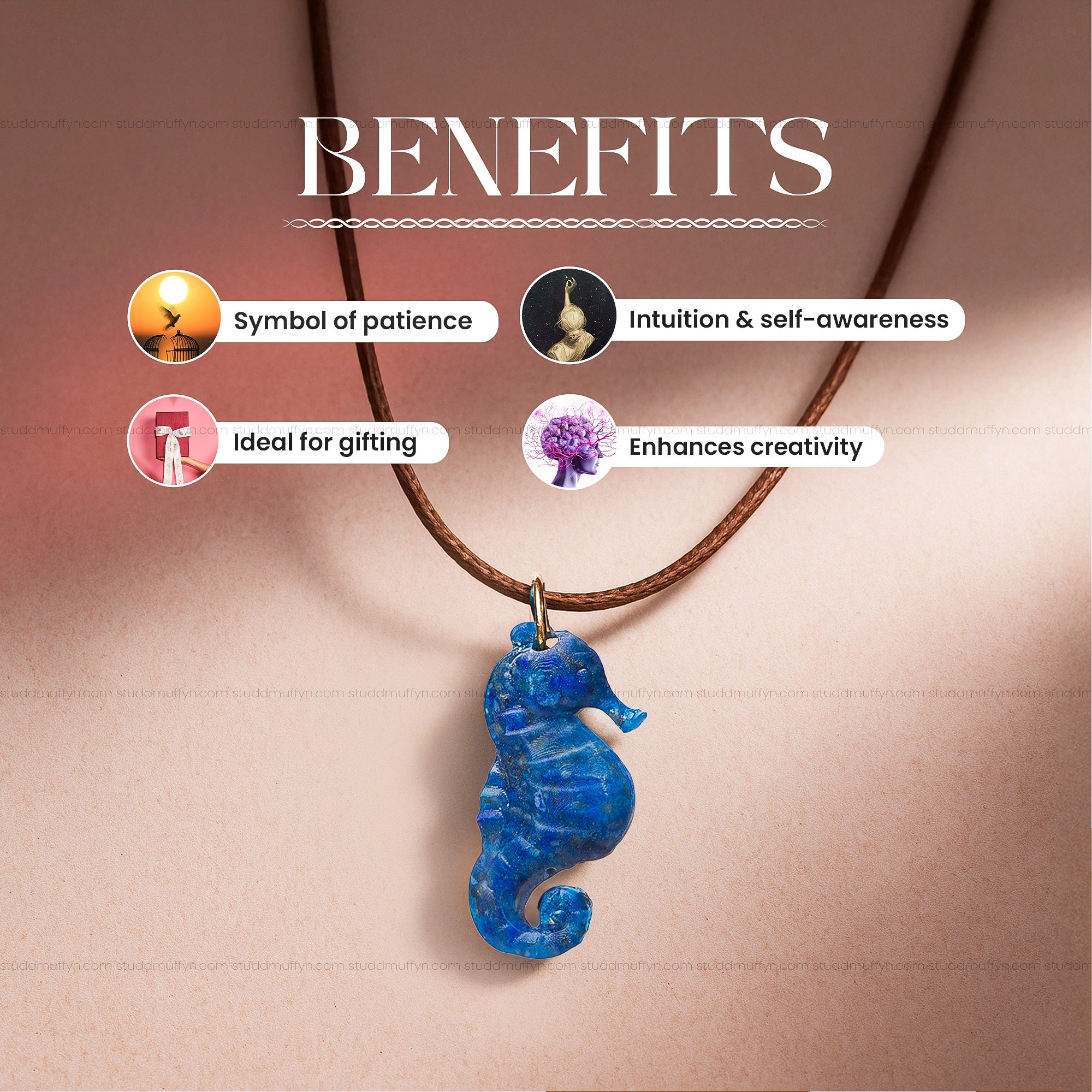 Graceful yet powerful — this handcrafted Lapis Lazuli Seahorse Pendant symbolizes wisdom, patience, and emotional depth. A statement of calm strength and timeless beauty.