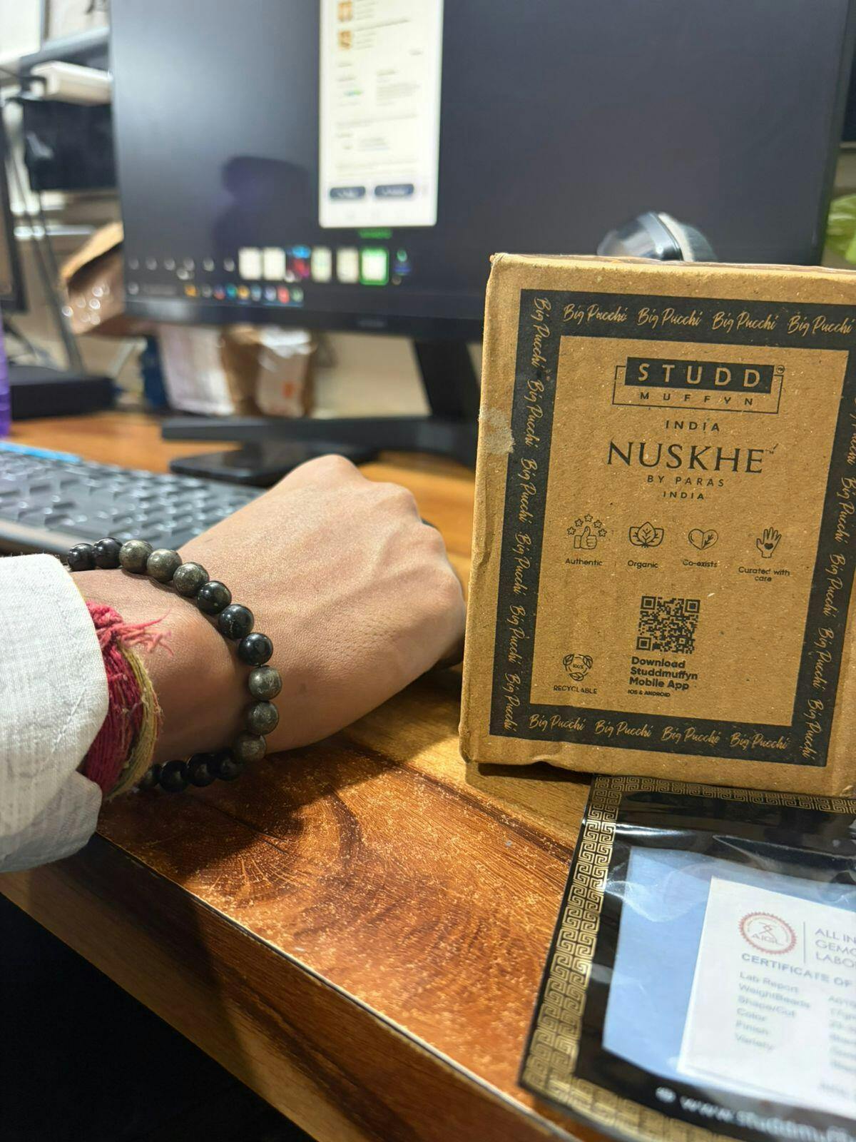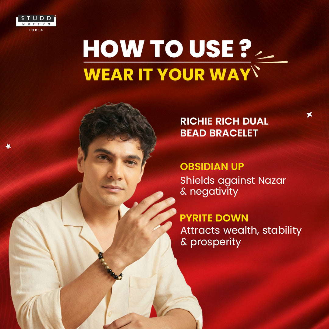 Studd Muffyn presents the Riche Rich Bracelet, a powerful combination of Obsidian + Pyrite beads, designed by the Pyrite Man of India Paras Tomar, to bring you double the energy in one stunning piece of jewelry.