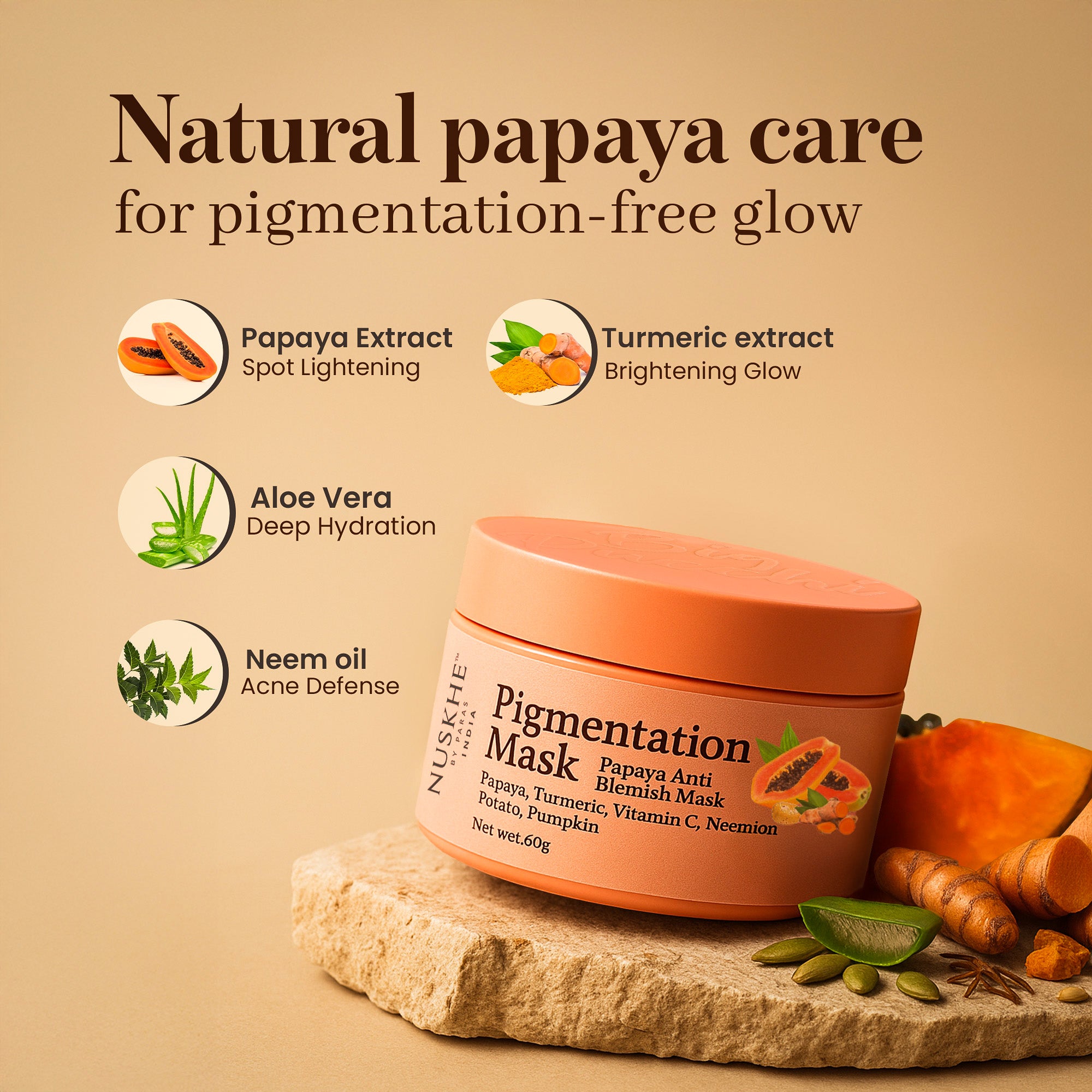 Want your skin to be pigmentation and blemish free naturally? OH! So here starts my job. Studd Muffyn is here with the new Nuskhe By Paras Pigmentation Mask. Made with the goodness of papayas and turmeric and most importantly, Our Love! This all-natural formulation is just created for you to get rid of Skin Spots That are Caused by the Effect of Acne, Pimples, Pigmentation, Under Arm Spots, Blemishes, Under Eye Dark Circles Etc.