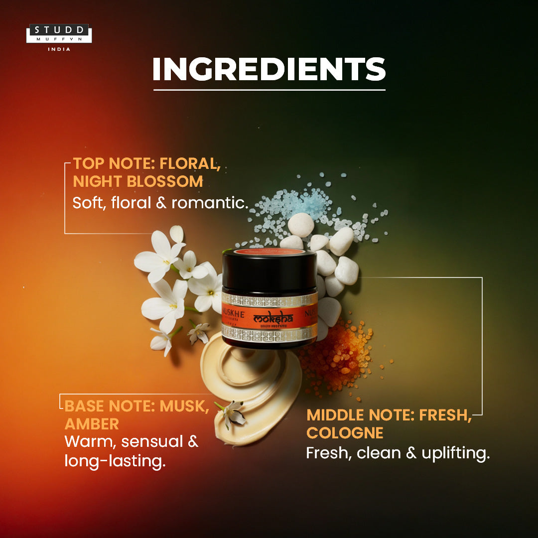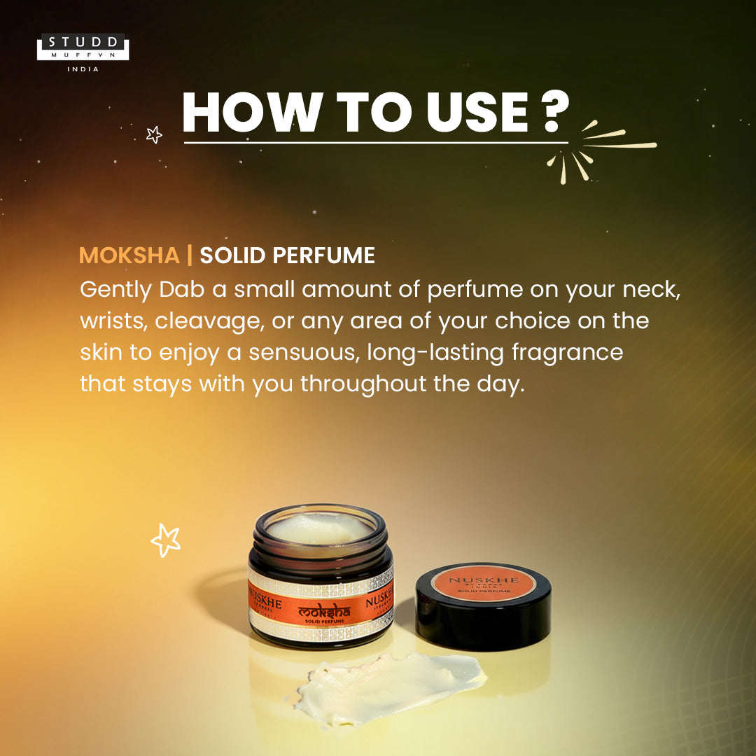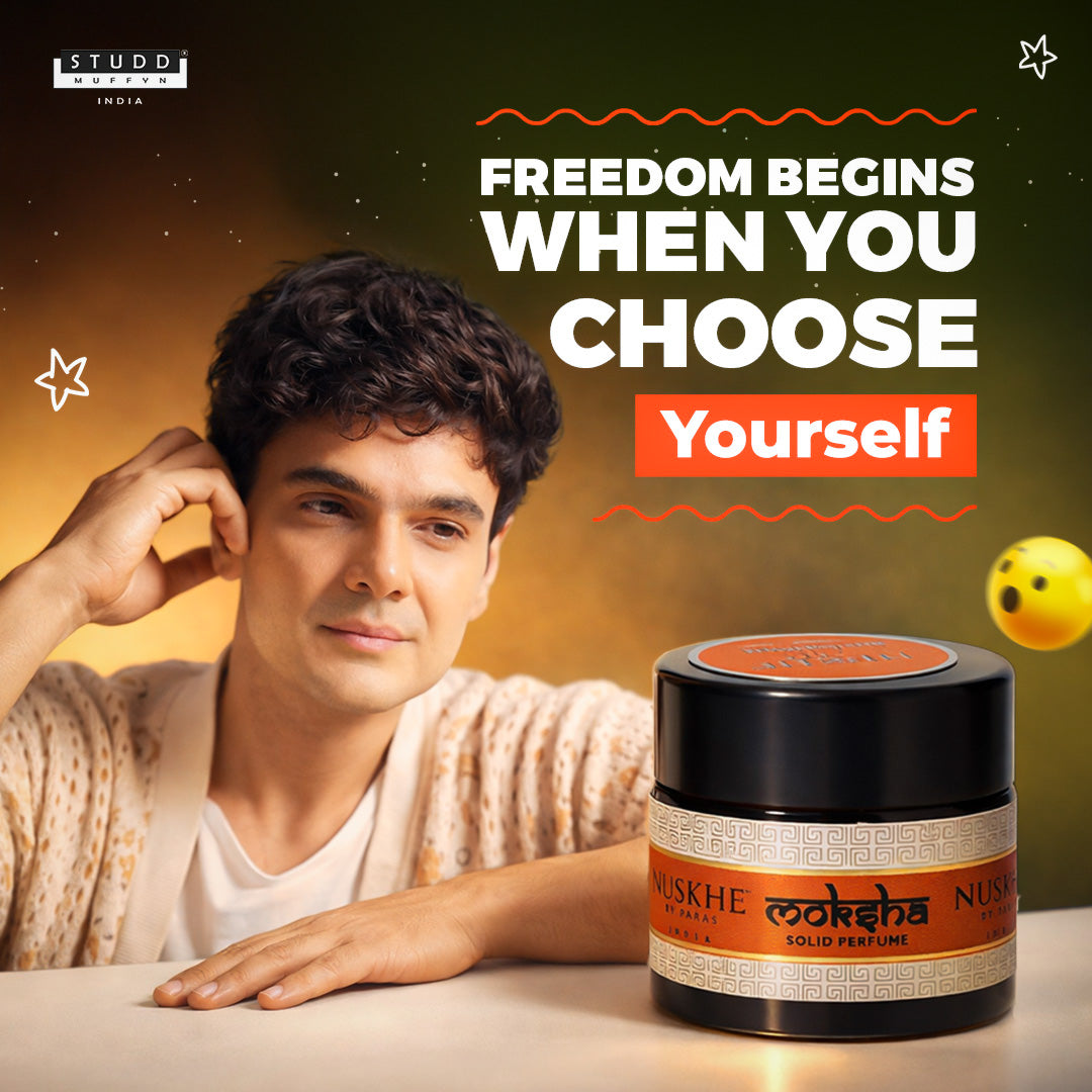 Mukti from the usual, the mundane and the everyday. This scent is designed to liberate. To be able to set you free. the scents in Nuskhe By Paras Moksha are uppers that make you realize the importance of just loving yourself. Moksha is breaking away from a cycle. when you live for yourself, you attain moksha.