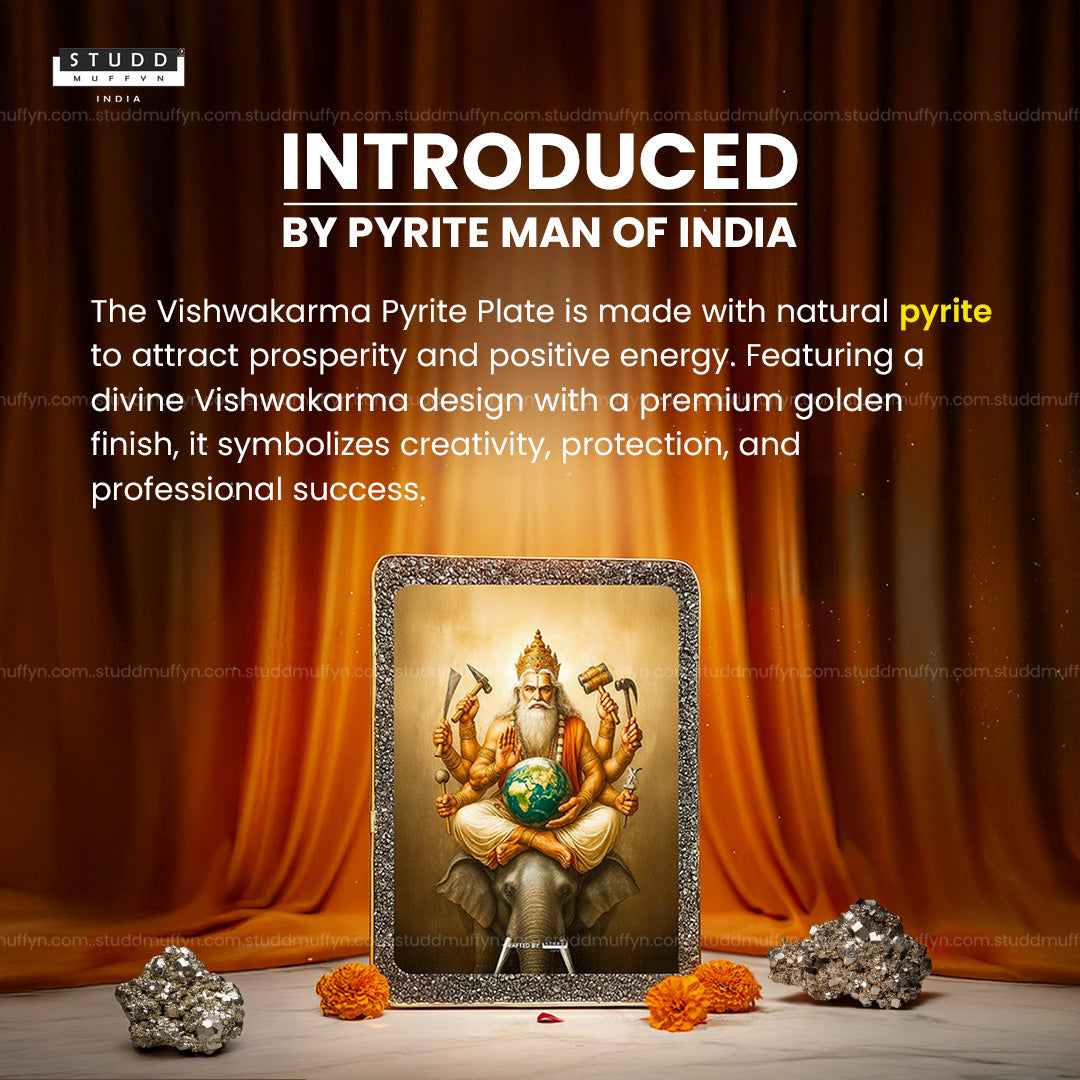Lord Vishwakarma is revered as the celestial engineer who shaped the heavens and Earth. Placing this pyrite-embedded plate in your home, workspace, or studio not only invokes blessings of creativity and prosperity but also serves as a powerful vastu enhancer.
