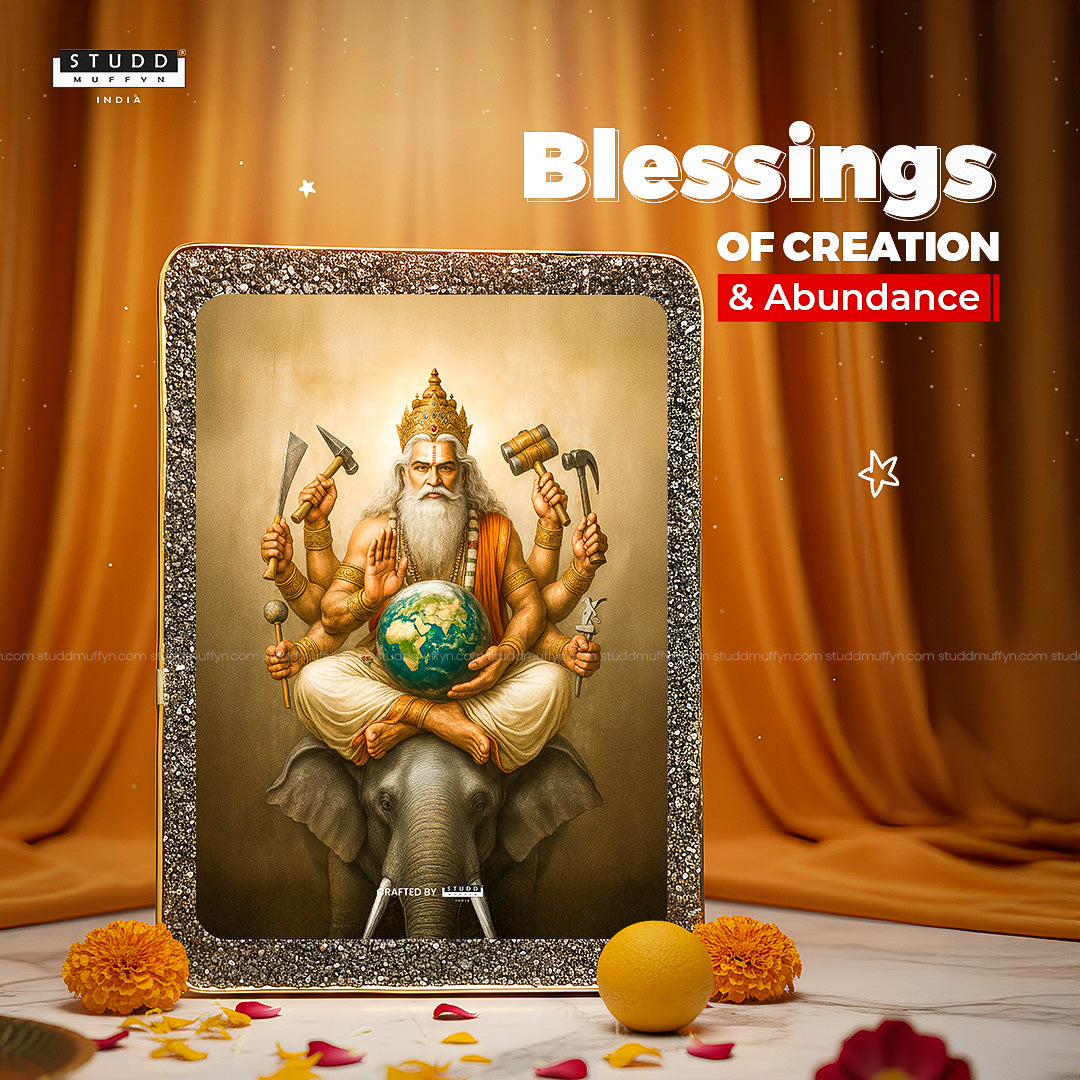 🔱 Lord Vishwakarma holding globe symbolizing divine creative power