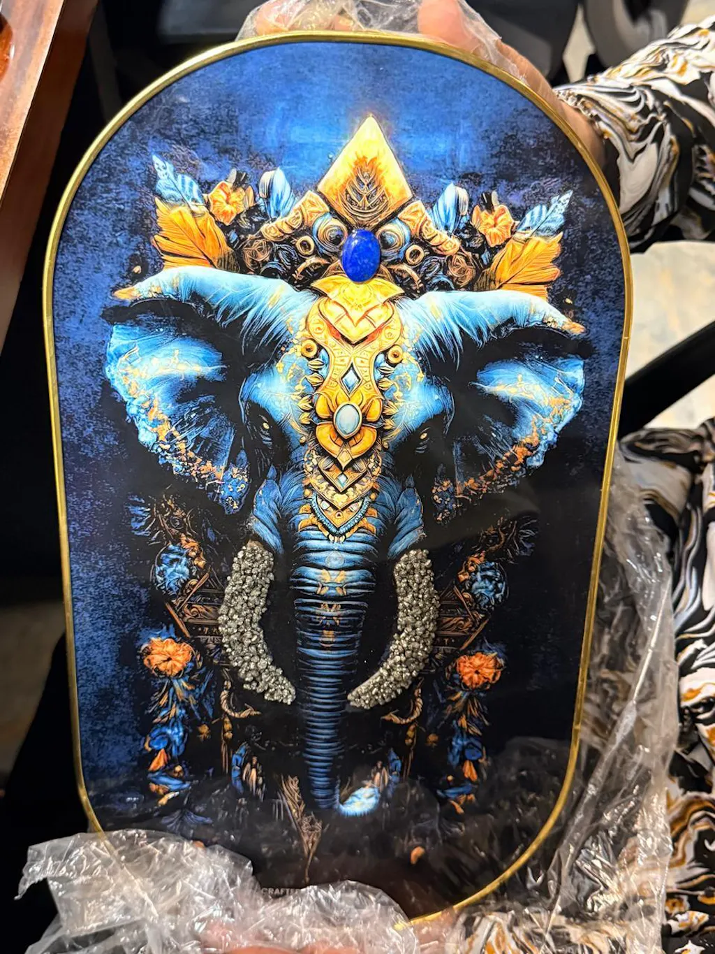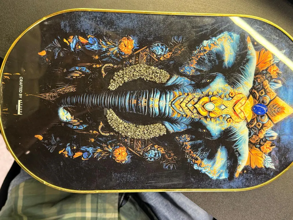 🐘 Elephant Pyrite & Lapis Plate – Wisdom & Prosperity
