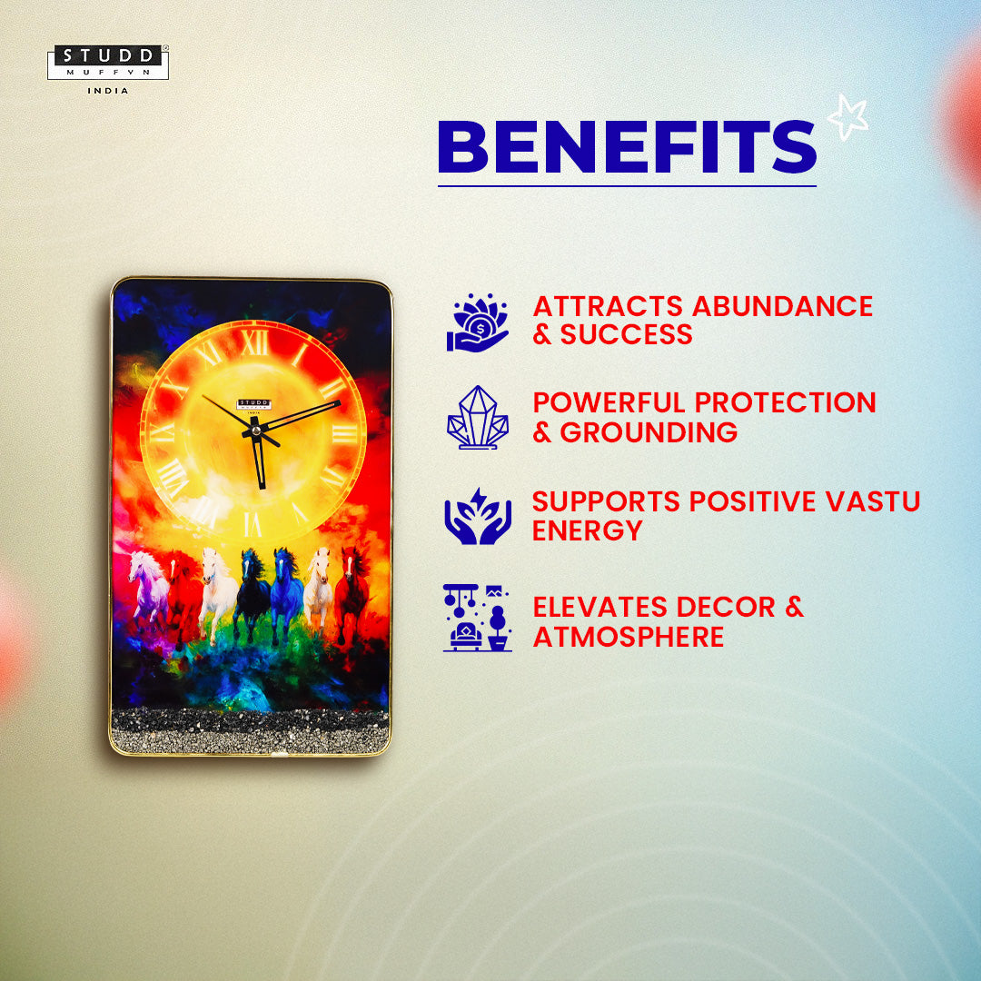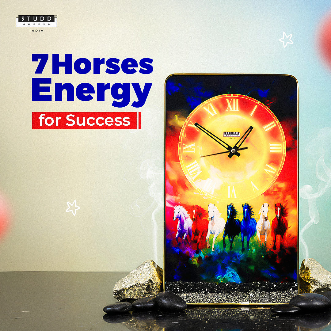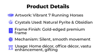 A luxurious artefact that blends art, energy & elegance, this clock brings the powerful momentum of the seven horses into your space — a symbol long associated with success, speed, determination, and good fortune.