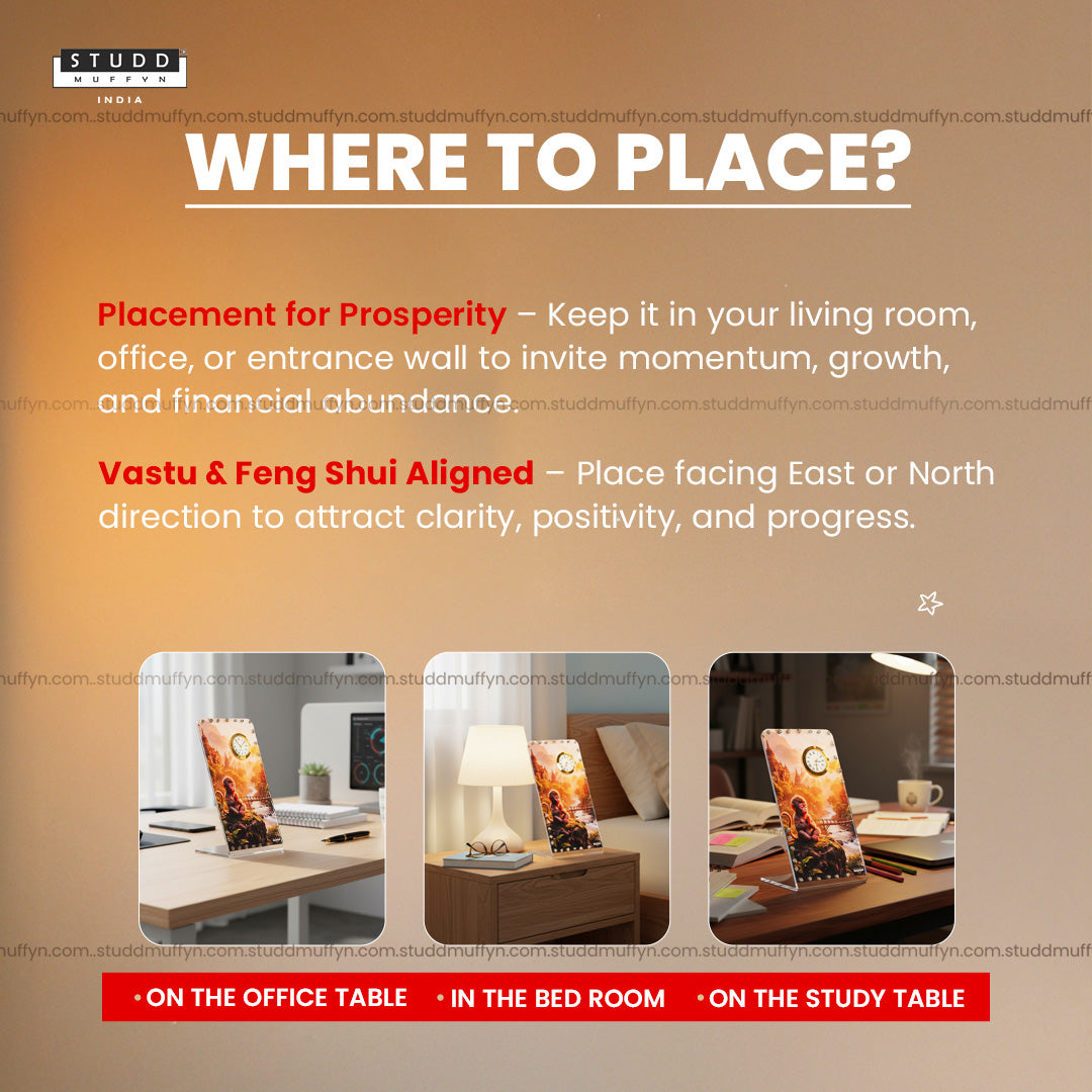 The beautifully detailed artwork combined with shimmering pyrite accents creates a luxurious, aesthetic, and meaningful statement piece. Designed with premium finishing and refined detailing, this handcrafted clock reflects elegance while carrying symbolic energy.