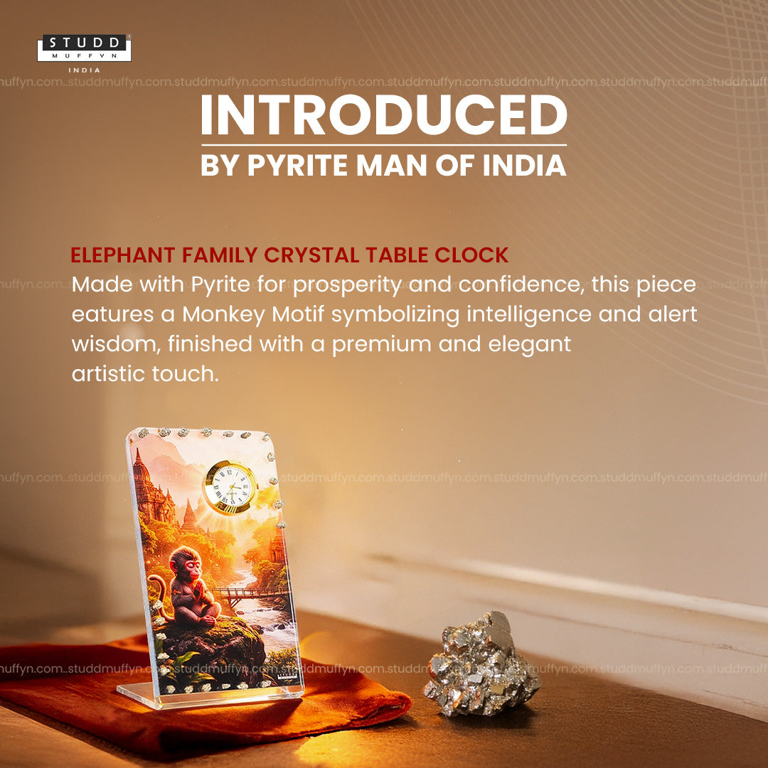 Introducing the Monkey Pyrite Crystal Table Clock, a unique décor piece crafted for those who value art, symbolism, and powerful crystal energy.