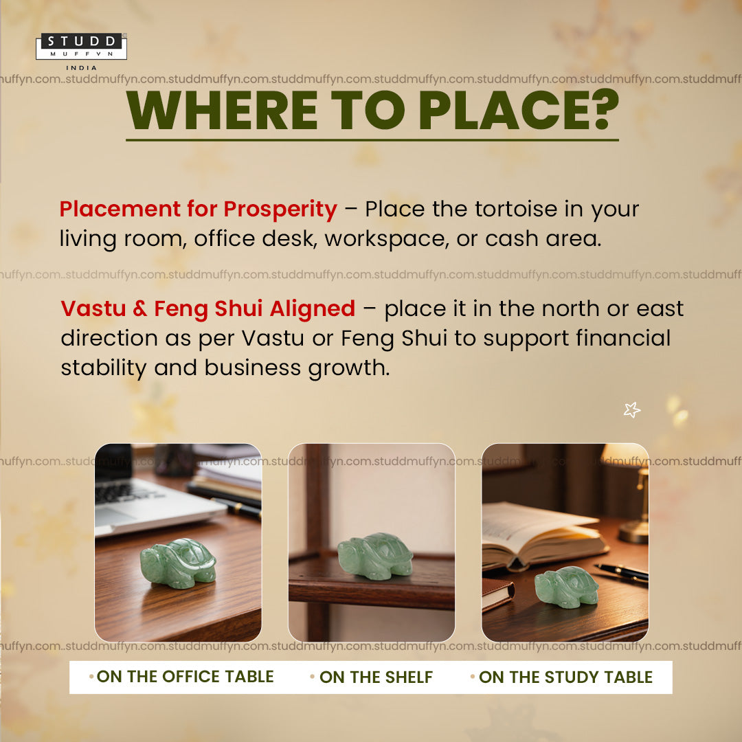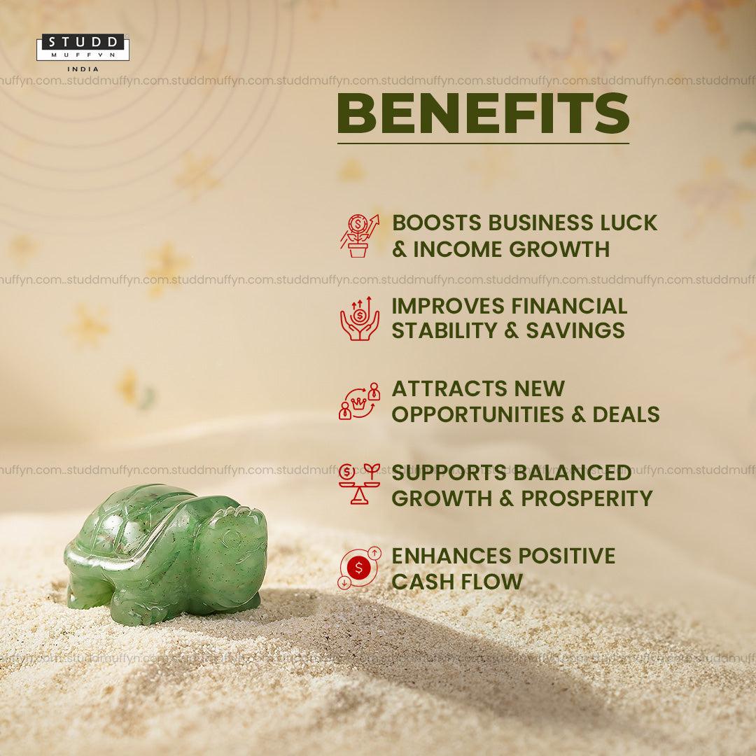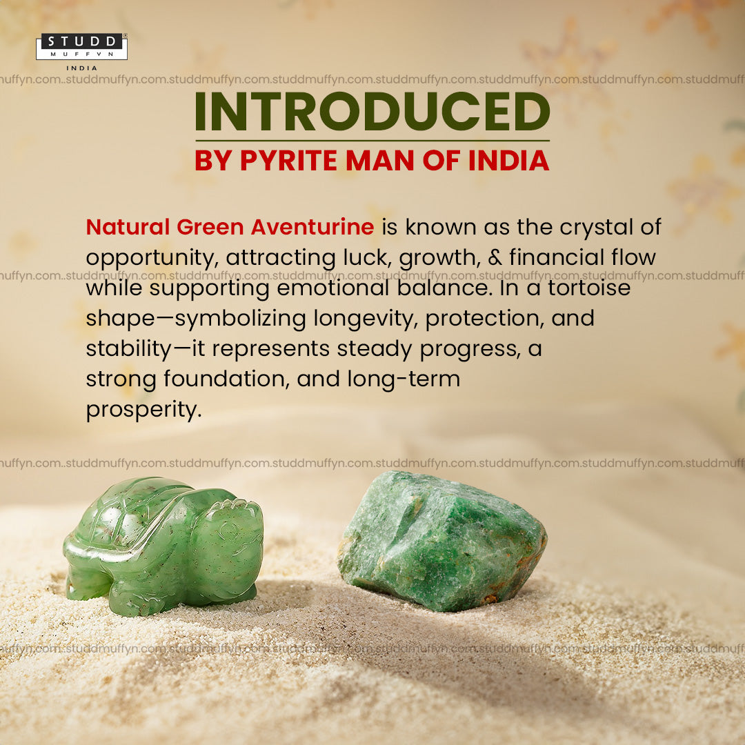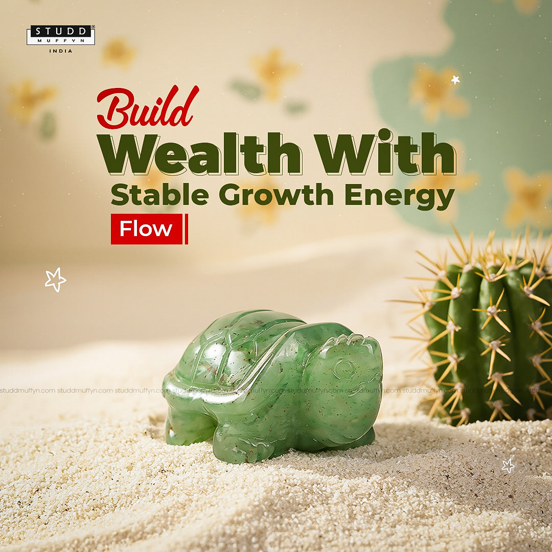 The combination of tortoise symbolism and Green Aventurine crystal forms an energy that supports steady and long-term financial growth rather than quick gains.