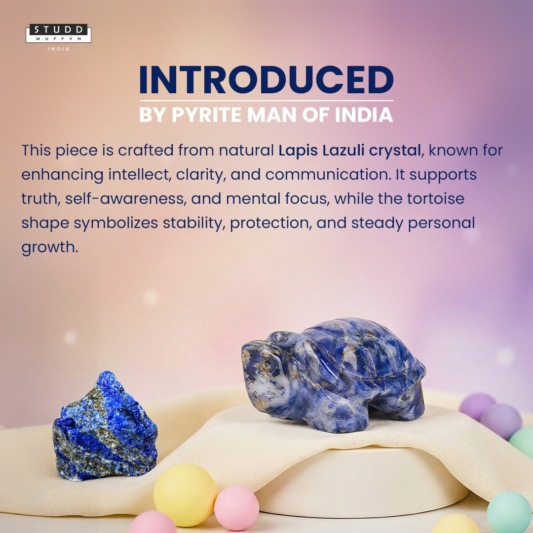 The Lapis Lazuli Crystal Tortoise is a symbol of wisdom, clarity, and inner strength. Known for its deep blue color and royal energy, Lapis Lazuli crystal is believed to enhance intellect, support clear communication, and encourage truth and self awareness. Keeping this crystal tortoise in your space is believed to promote better decision making, mental clarity, and a calm, focused mindset.