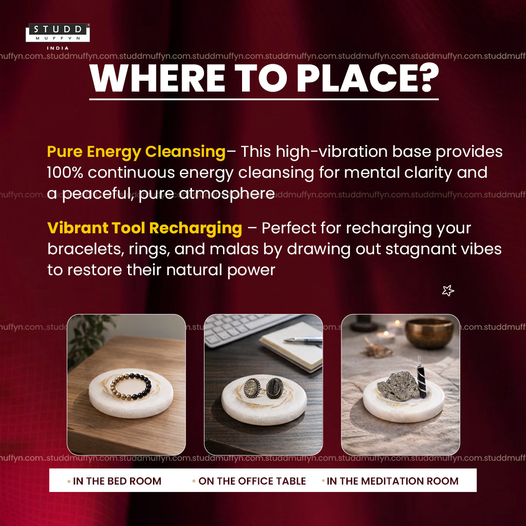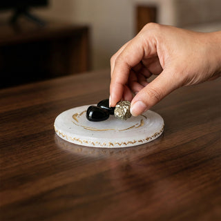 Minimal yet premium in appearance, this coaster adds a refined, luxurious aesthetic to your bedside, work desk, or meditation space while maintaining energetic hygiene effortlessly.
